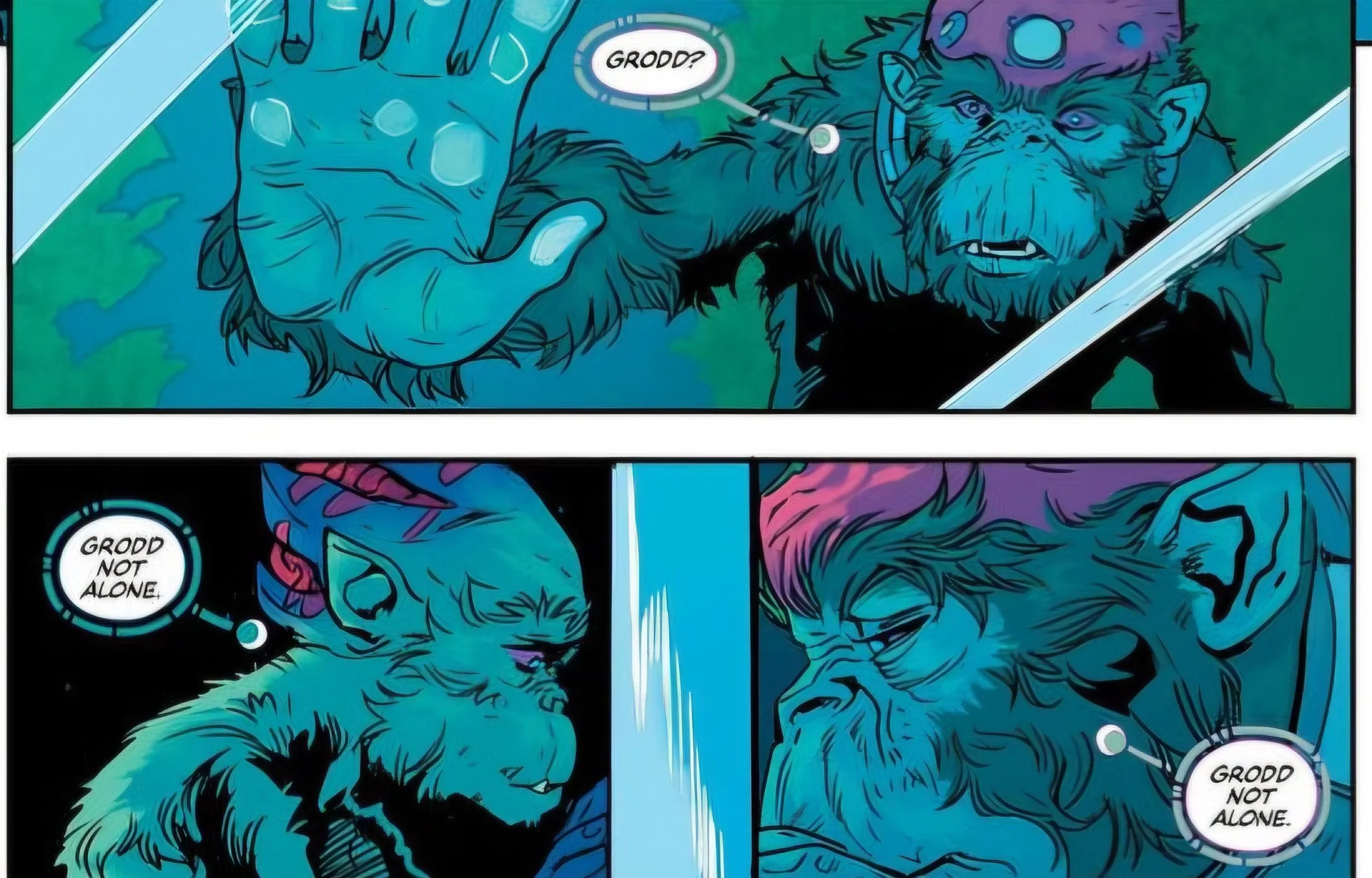 The only aspect I really liked about this issue was Absolute Grodd being reunited with his father and them both fleeing the facility together. In the epilogue, it suggests that Absolute Grodd may even start to mirror his mainline universe counterpart, with his father telling him that all of humanity is evil after only seeing the dark side of it due to being experimented on his entire life. This was cool to see, as I love Gorilla Grodd, and although I thought his moments with Absolute Wally were touching, I can't really imagine the same dynamic working in the new status quo.