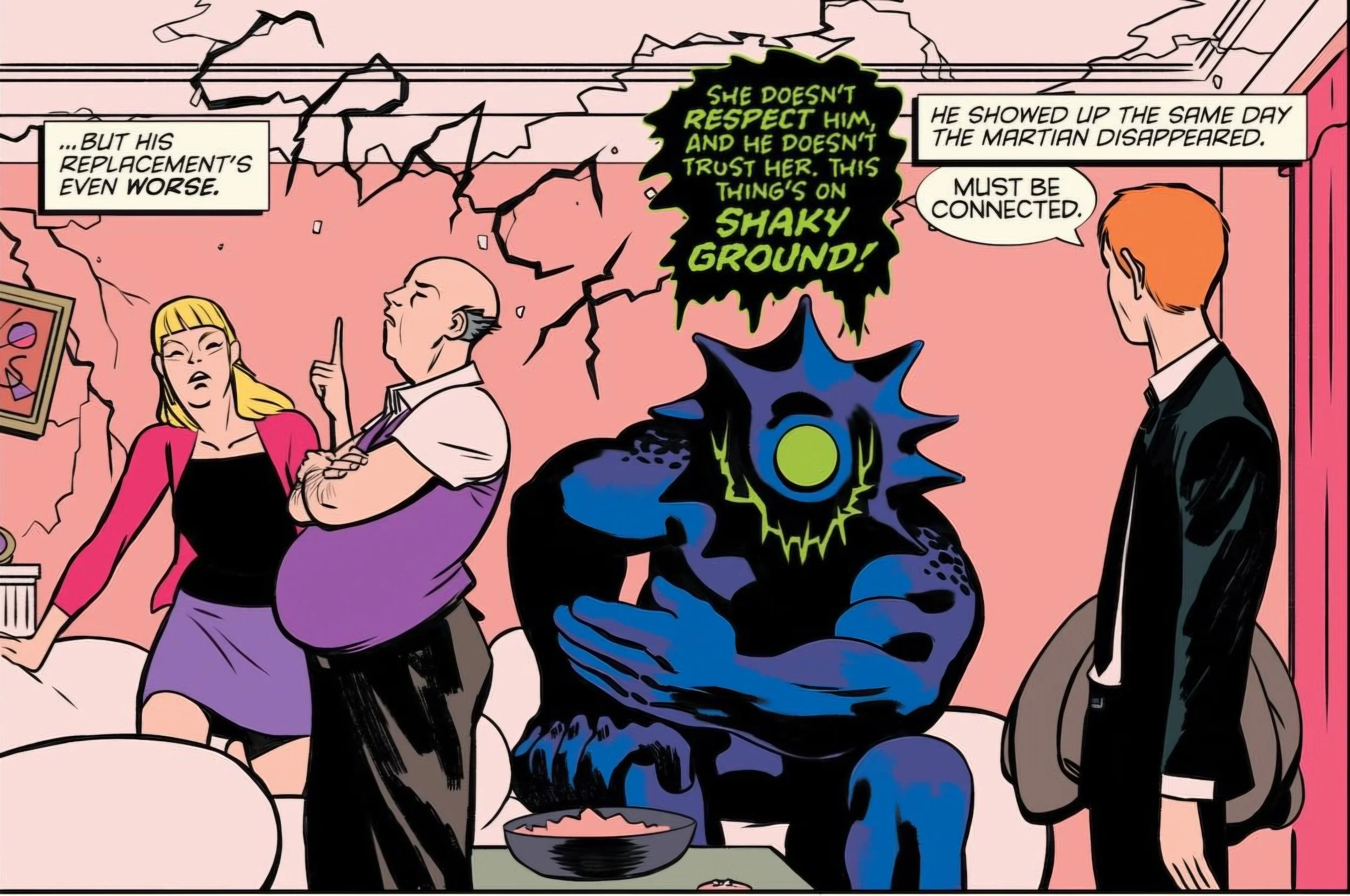 The issue also gave us more clues as to what the sinister White Martian is doing. We received more information on the sinister agency that ends up kidnapping a weakened and vulnerable Green Martian in the absence of John. John Jones also found a sinister new replacement for the Martian in Despero. This is an entity that appeared to fill the mind of whoever it is infecting with thoughts of inadequacy and depression, with the endgame of ruining their world.