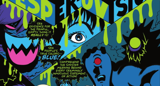 The element that especially cemented this issue for me as a must-read comic is Despero and his very cutting, close-to-home dialogue. That is a real draw for me to this series, as well as other work by Deniz Camp, in that he really writes with great sincerity. I feel like he is not afraid to be a little bit vulnerable and put himself on the page. By doing so, he provides the reader with a genuinely honest and meaningful read that does not feel like it is merely a writing job, but actually a glimpse through a window of creative inspiration.