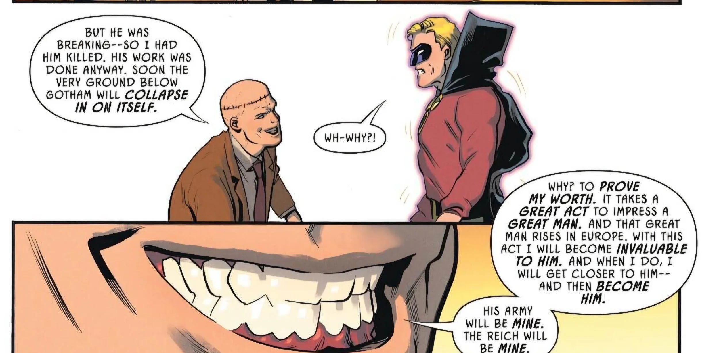 Much of this issue is devoted to the revelation of the Ultra-Humanite, with all the pieces finally coming together. As a result, there aren’t many individual moments in the issue to discuss. However, as I’ve mentioned, I find the grand reveal of the big bad and his plan really fun, without feeling outright offensive, even though it involves the Nazis to some extent. When you see that Nazis will play a part in a story, it can initially feel concerning and risk being in poor taste or tone-deaf. But, much to Jeff Lemire's credit, the Nazis don’t feature heavily—they are largely spoken about and reduced to cartoonish villains, somewhat reminiscent of the Indiana Jones films. The comic doesn’t downplay the Nazis, but instead casts them as classic Golden Age-style bad guys, which I find neither offensive nor in poor taste.