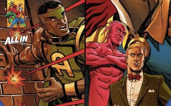The way Guidry pays homage to the classic characters is also excellent, approaching the Silver Age designs without over-modernizing them—avoiding the typical need to update classic outfits to fit 21st-century superhero aesthetics. I particularly like that Hawkman and Hawkgirl’s costumes clearly look like cloth and tights, as many superhero suits of the time did. It’s charming and adds to the nostalgic feel!