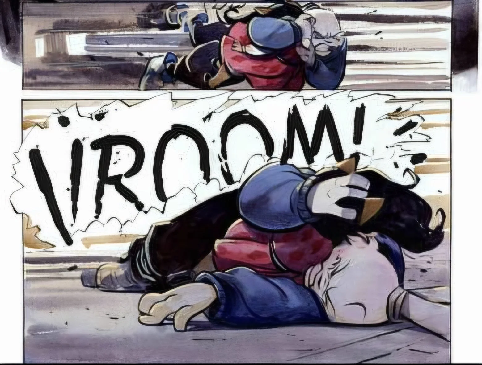 Usagi Yojimbo: Kaito ‘84 follows a descendant of the legendary white rabbit ronin Miyamoto Usagi, Kaito Usagi, who is joined by his brother Yukichi Usagi in 1980s Japan, as the title of the book implies. This is hundreds of years after their ancestor’s adventures in ancient Japan. Both brothers appear to be following in Miyamoto’s footsteps, being heroes for the downtrodden of society, although perhaps in ways that Miyamoto wouldn’t have agreed with, as they perform Robin Hood-style heists and raids on the bad guys.