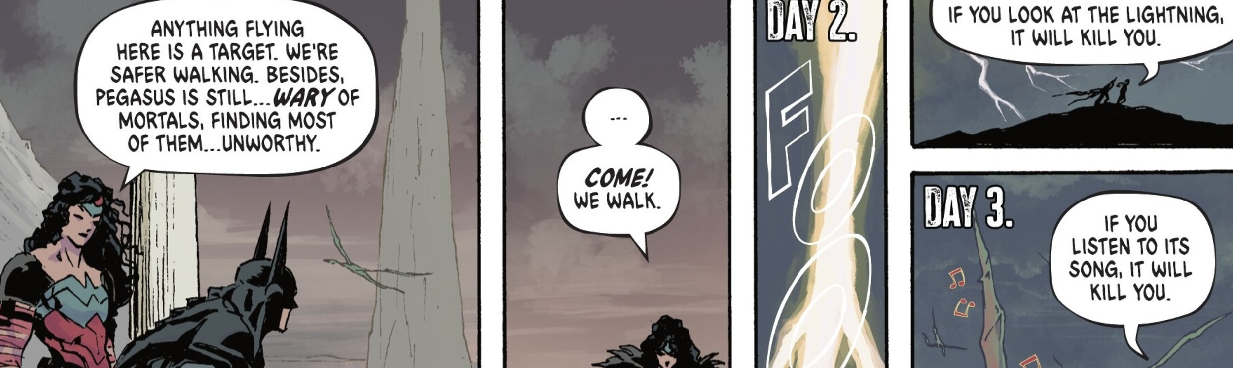 The scene immediately following this deeply emotional moment made me chuckle. We transition from a "heart-to-heart" between father and son—and perhaps between writer and reader—to a two-on-one fight featuring Wonder Woman and Batman versus Akrolis, a magical centaur from hell.