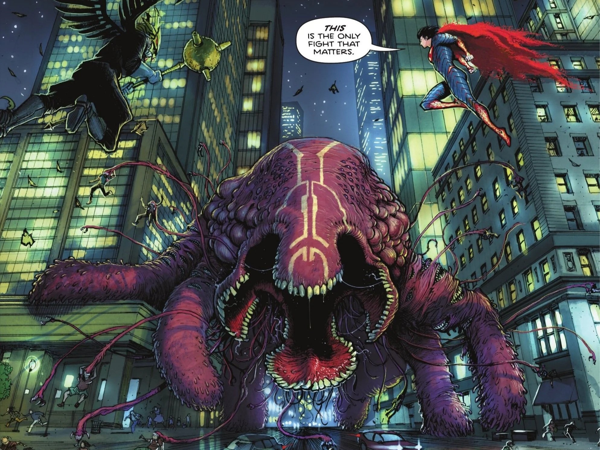 The threat of Absolute Parasite is gruesome and terrifying, reimagining the classic Superman villain as a viral contamination rather than just a hapless schmuck in the wrong place at the wrong time. We don’t yet have the finer details on how this Parasite functions, gains mass, or what truly happens to its victims, but I suspect we’ll see exactly how dangerous it is when Superman and Hawkman contend with it in the next issue.