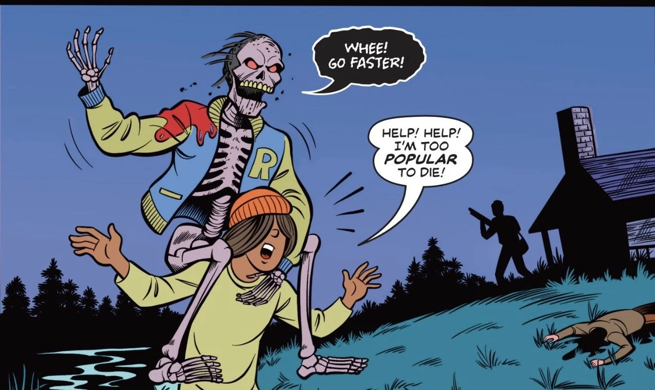 One of the hardest things about inter-property crossovers is making sure everyone’s voices are properly represented. You want Archie and friends to sound like the classic comic versions of themselves and not, say, the Riverdale versions (actually, the happenings in this book aren’t even weird enough for the Riverdale versions—they’d just yawn and go back to making out with each other). Every line out of Ash’s mouth needs to be heard in Bruce Campbell’s distinctive voice and delivery. I’m happy to say they’ve nailed the voices here. Archie is, as mentioned earlier, a lovable screw-up. Jughead is (largely) unflappable. Reggie is a rich jerk. Betty and Veronica are, well, the love interests. And Ash? His characterization, in particular, is spot on. He comes across as a cool, aloof badass, but deep down he’s as scared as any normal person would be. That doesn’t stop him from firing off one-liners as quickly as shotgun shells, but that’s more of a coping mechanism than anything else.