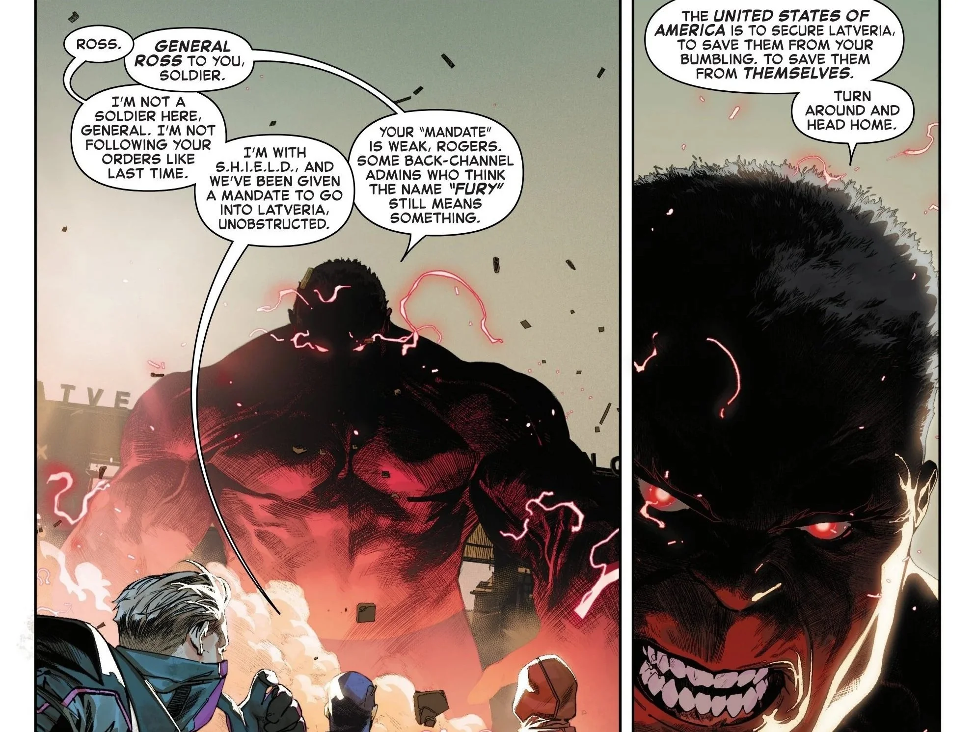 Nick Fury, Jr. stands up to General Ross.