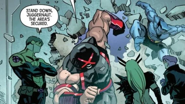 Speaking of diving in head first, Juggernaut shows up late to the party. Illyana tries to apologize but Scott says he doesn't need apologies, he needs soldiers. Much to the dismay of Beast who pleads with him back at their Alaskan HQ that they are NOT soldiers.