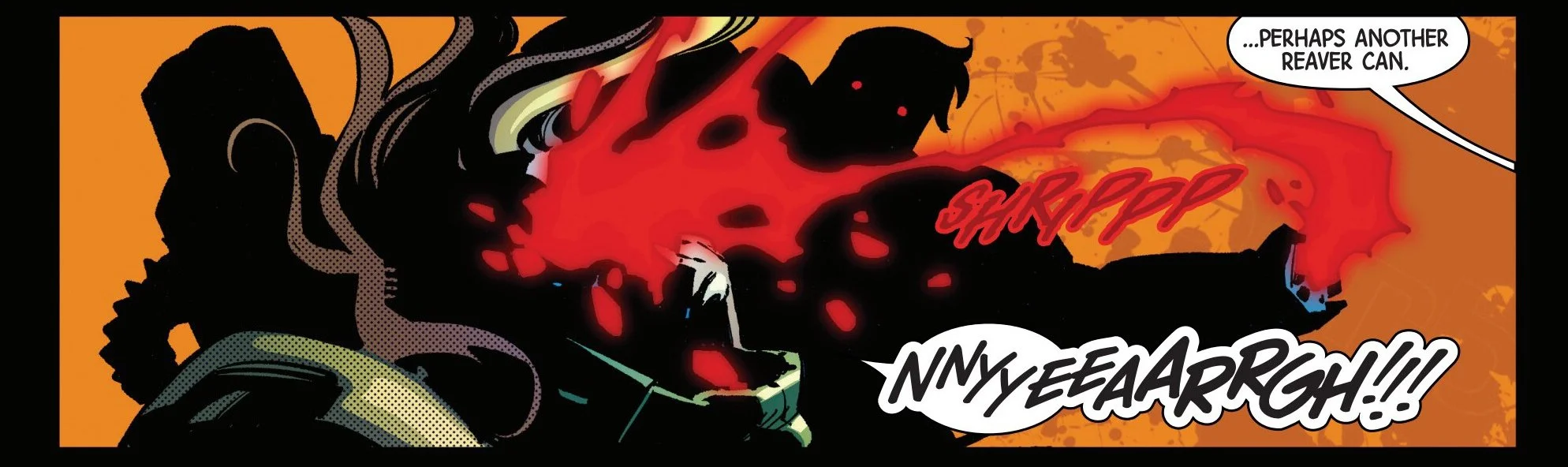 A solid follow up to last month's issue. The action is constant, the writing is solid and doesn’t drag on for too long. If I had to prove any other X-Title to read along with the mainline X-Men it would 100% be this. The Reaver designs are all badass and menacing. Sort of reminds me of the designs of characters you'd see back in the City of Heroes video game (remember that?!). I appreciate how they all have these douchey personalities, making them just super unlikable from the jump. I want to see Cyclops put a whooping on them ASAP.