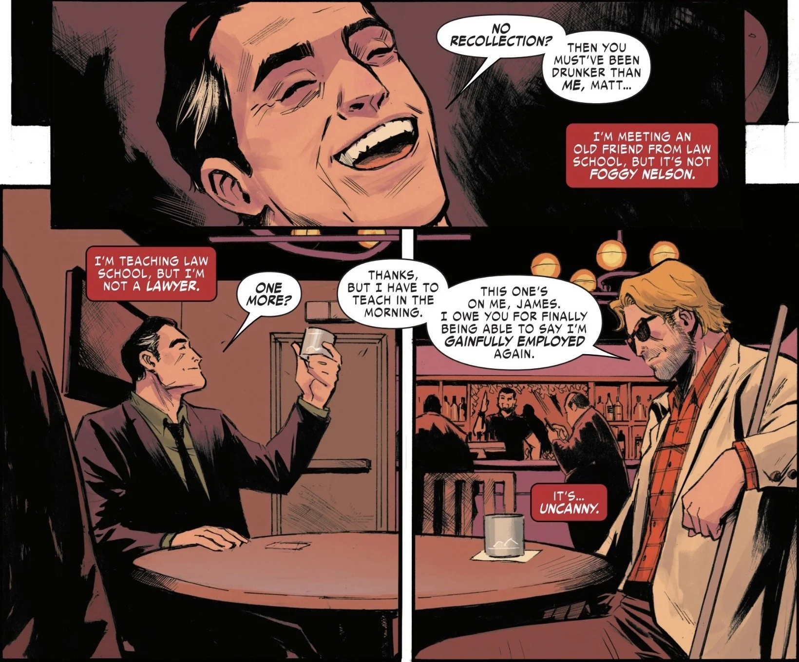 The idea of Matt Murdock as a law professor is a great one. Some of my favorite modern Spider-Man stories are by J. Michael Straczynski, where Peter Parker becomes a science teacher at his old high school, so I love the idea of Matt doing something similar here. Based on the short classroom scene in this issue, there is a ton of story potential in this new profession.