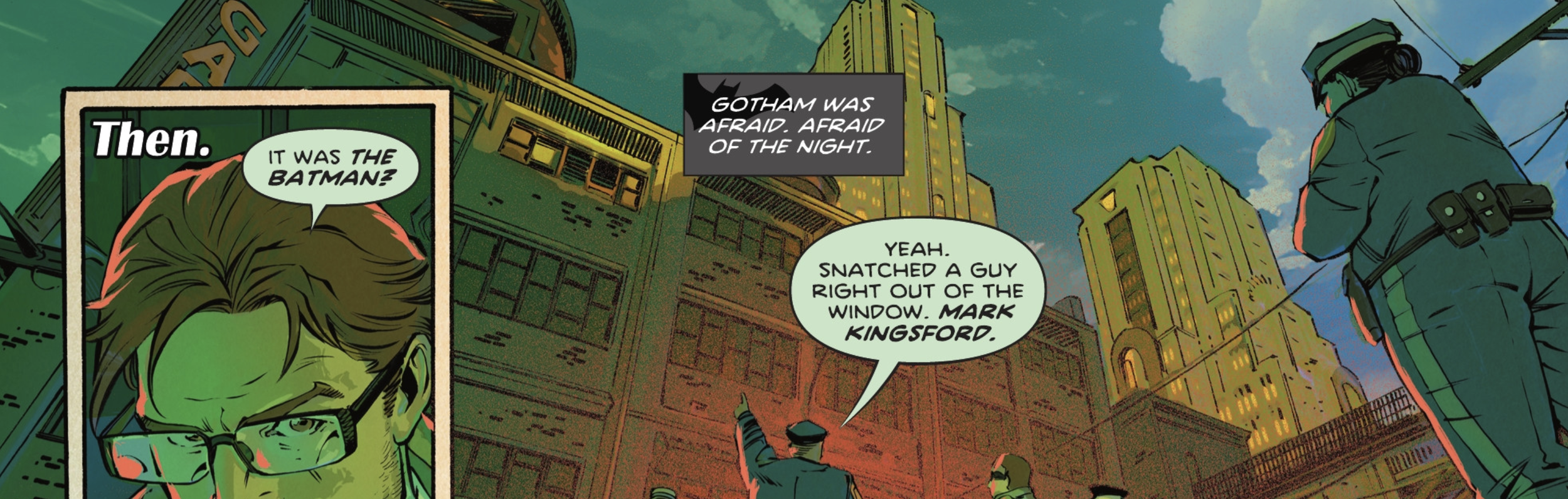 The crazy genius of Leo Kingsford fully comes to fruition as he explains the elements of his plan to Batman; it’s stereotypical villain monologuing, but it fits his "smartest man in the room" persona perfectly. It harkens back to Detective Comics #1101 and the beginning of this tremendous story arc, where Batman reported a fog descending upon Gotham City while he investigated the harbor to uncover the "No Fear" virus.
