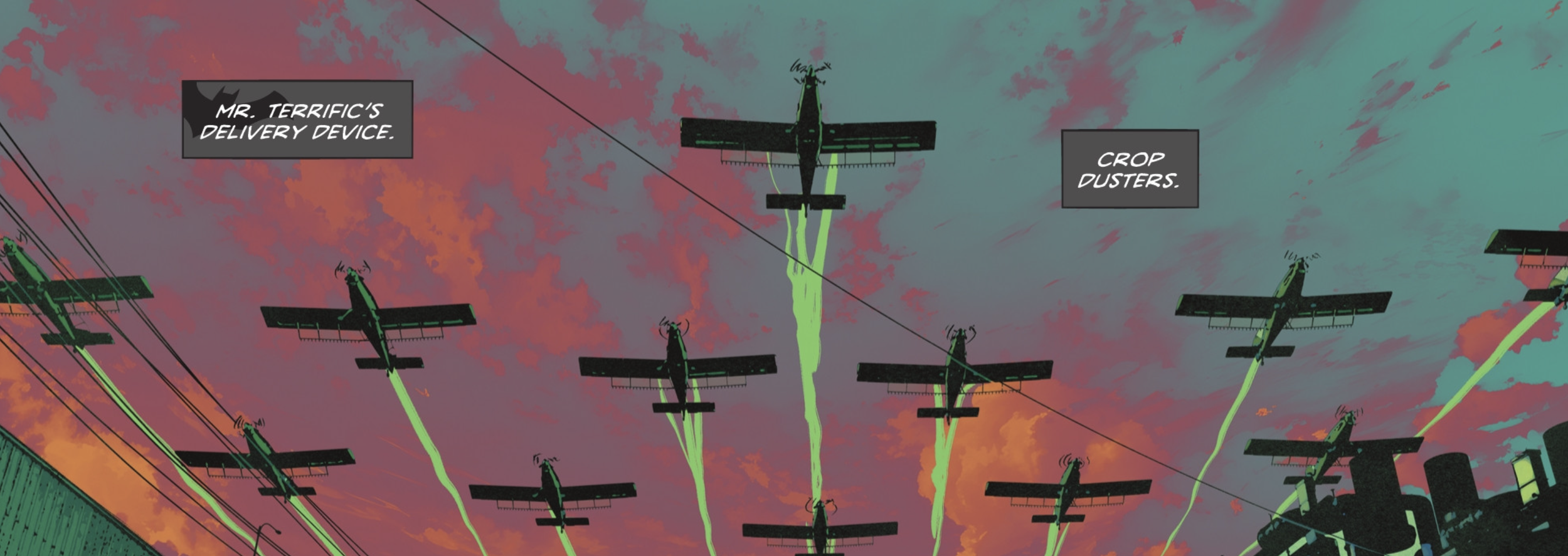 Taylor gave me, as the reader, a simple solution to cure the population of Gotham, spreading Scarecrow’s Fear Toxin with crop dusters. To me, the use of crop dusters was a clever, tongue-in-cheek reference to the Scarecrow—pastures, fields, and crops, places where you keep a Scarecrow. This works, of course, it does, Batman and Mr. Terrific thought of the plan, but it is a temporary fix, which left the ending of Detective Comics #1106 still interesting for me as a reader.
