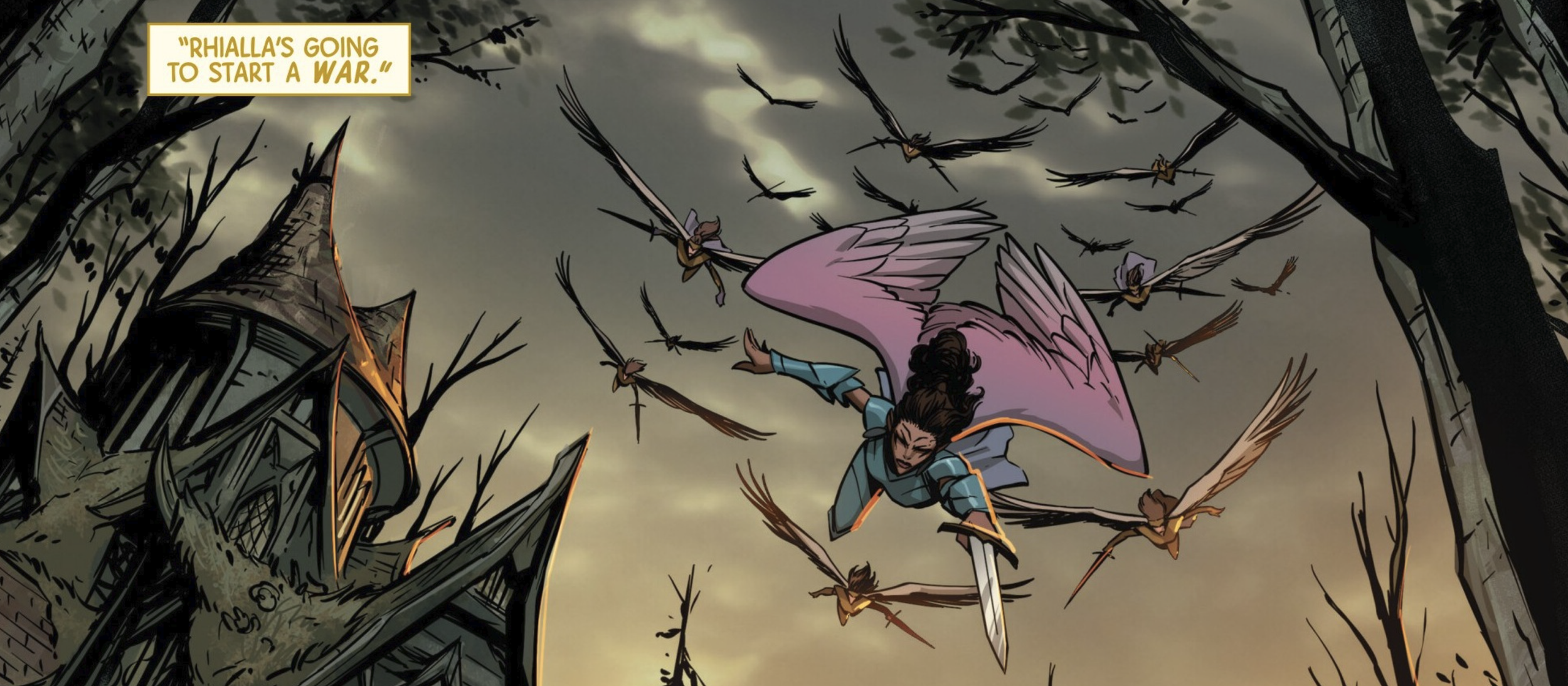 My favorite scene from Doctor Strange #3 is when the assassin turned grieving daughter, Alydenna, is telling her story of how Vyrbodin was turned from a sweet boy into an evil dark wizard. The coloring is phenomenal from DSA, creating a beautifully hazy vision of Alydenna imagining her memories. While we see Alydenna’s memories, Fiorelli still draws in all the reactions of the characters, and the grimace of emotion that you see upon Alydenna’s face made me, as a reader, feel her pain.
