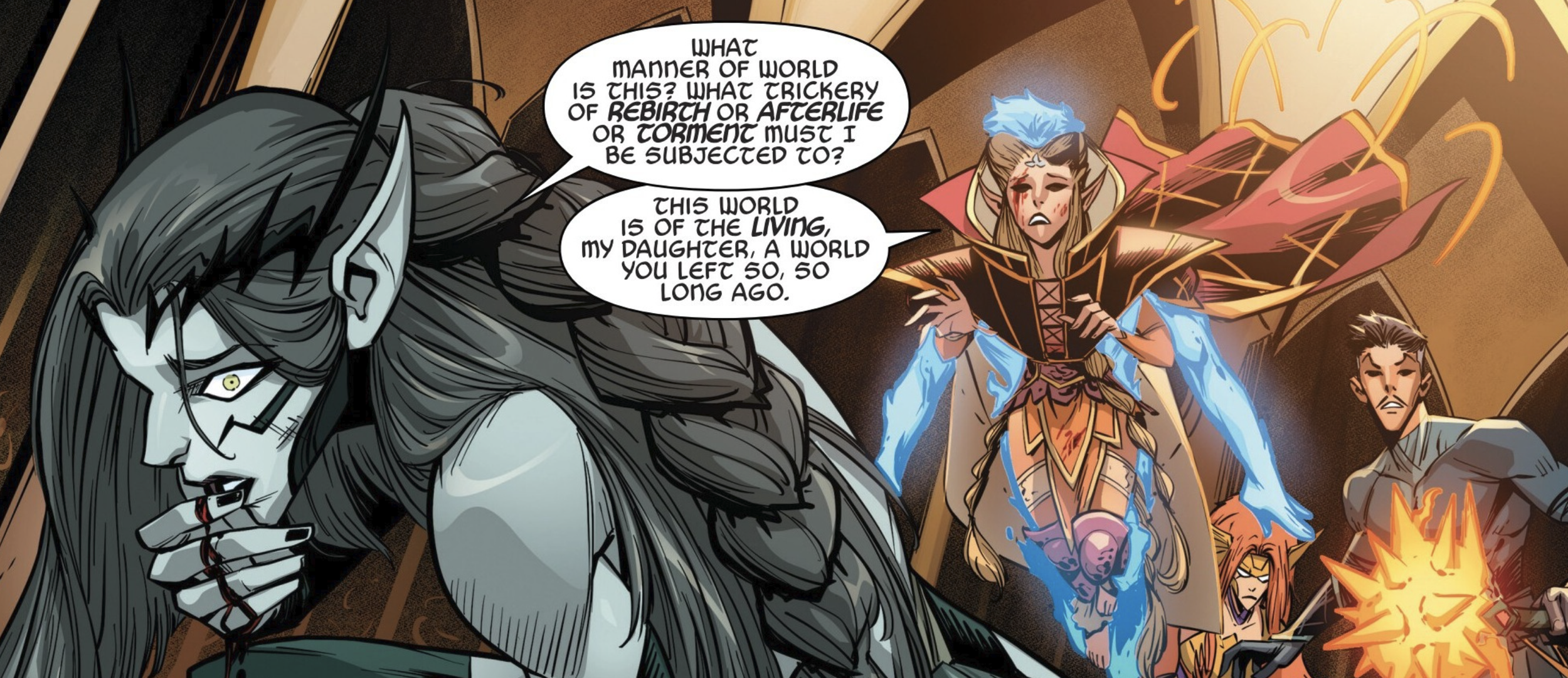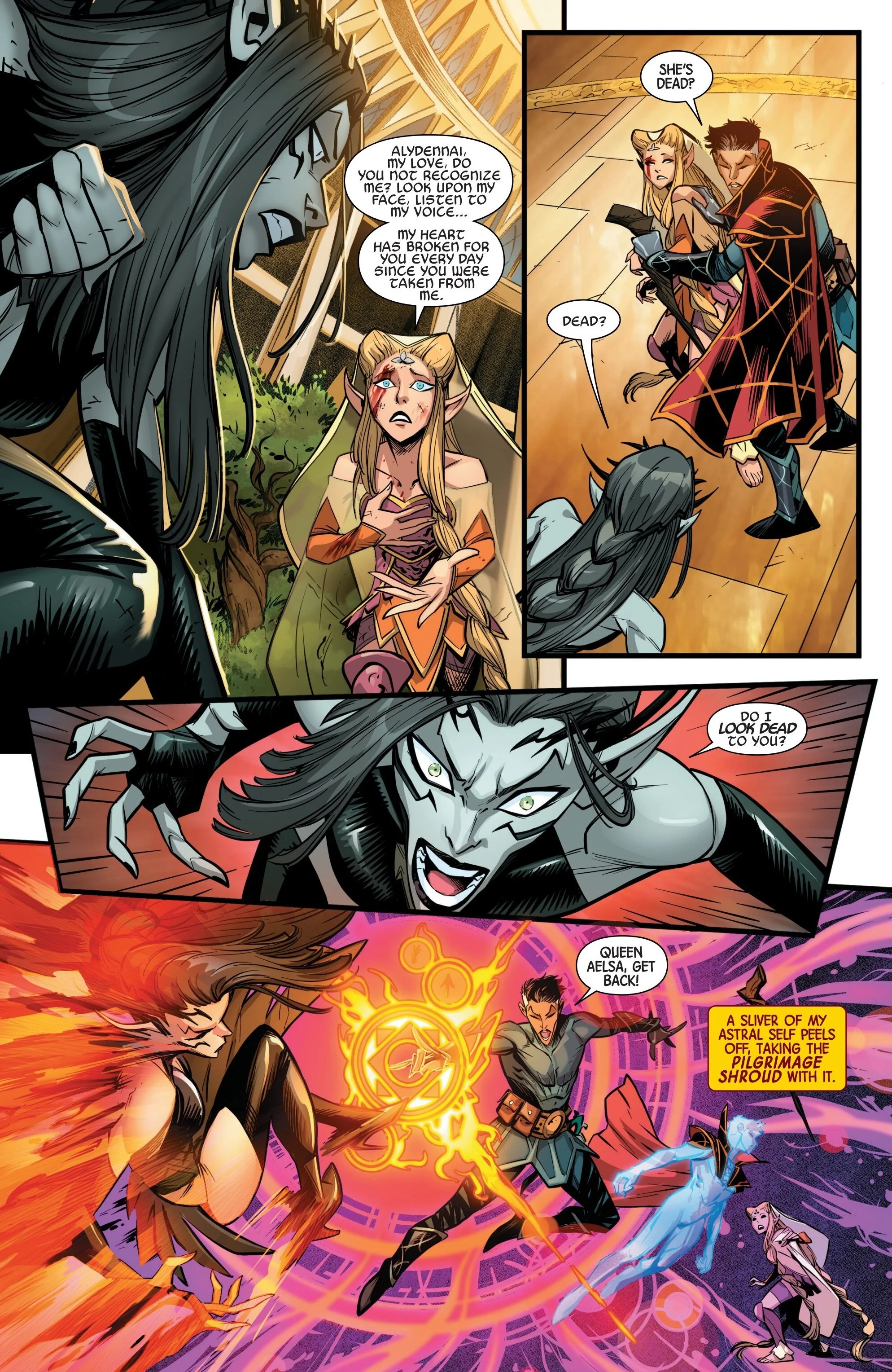 As a reader, I learned more about Vyrbodin’s past and how it is intertwined with the whole story arc itself. That allowed for characters such as Queen Aelsa to have their spotlight and emerge with enhanced importance in the story moving forward. We are given insights into why Vyrbodin revives his mother in Doctor Strange #2. She is going to assassinate Queen Aelsa. In a brilliant piece of recall writing, Landy reminded me as the reader that Vyrbodin is Queen Aelsa’s grandson. Therefore, his revived mother is now going to murder the Queen herself, who is, in fact, her daughter!