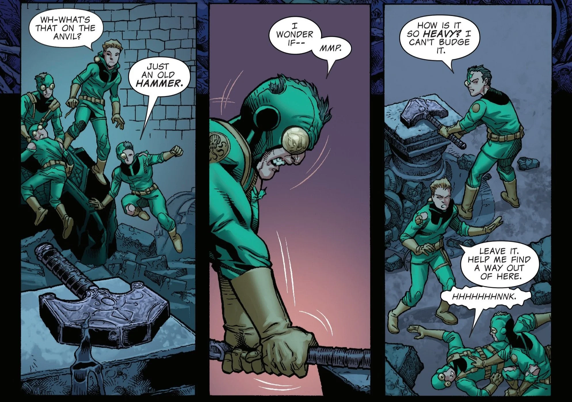The commanding Hydra officer takes his gun and handles Thewlis. He guns him down due to the fact that the soldier is dead weight to them for the journey ahead. As he is talking to the team, he hears something speak out to him. A message calls him "worthy" as he discovers that only he is able to pick up that hammer that they found. What does the hammer hold? What is this hammer specifically? We are not told, as we are introduced to the fourth group interested in the secrets of Doom.