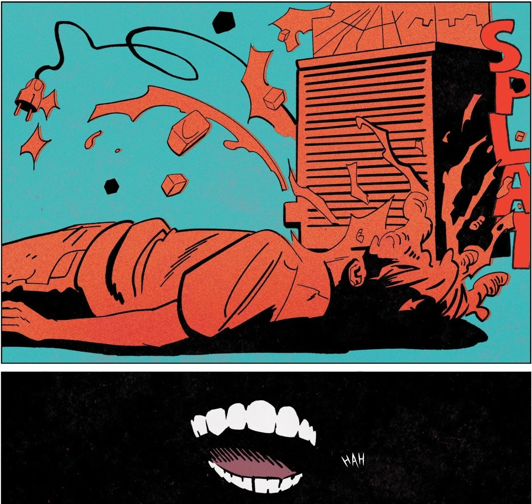Mike tackles him immediately, sacrificing himself so Xavi and Jason can escape. Xavi drags Jason into a haunted house, ignoring the protests of the boy, trying to keep him safe. Meanwhile, Randy crushes Mike in one of the most shocking deaths of the series by dropping a soda machine onto his head and crushing it on impact. It is grotesque, and it is abrupt. I am genuinely saddened by the death of Mike. He had quietly become one of the emotional anchors of this story. However, as someone who is a big fan of Rascal Randy, I cannot deny how effective this moment is. Randy remains one of the most unsettling figures in the book. We barely see him clearly. There is only that grin in the darkness.