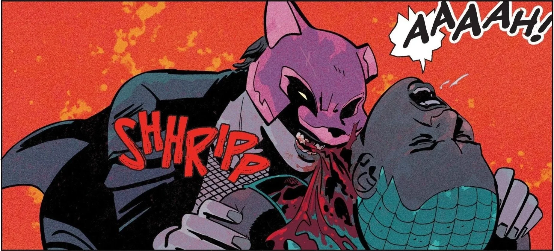 Exquisite Corpses #10 is a major escalation from the comparatively calmer issue #9. The Fox Mask versus Recluse fight is one of the best action sequences the series has delivered. Audrey’s grief is heartbreaking. The death of Mike is shocking and impactful. Additionally, Rascal Randy continues to cement himself as one of the most terrifying and entertaining characters in the book.