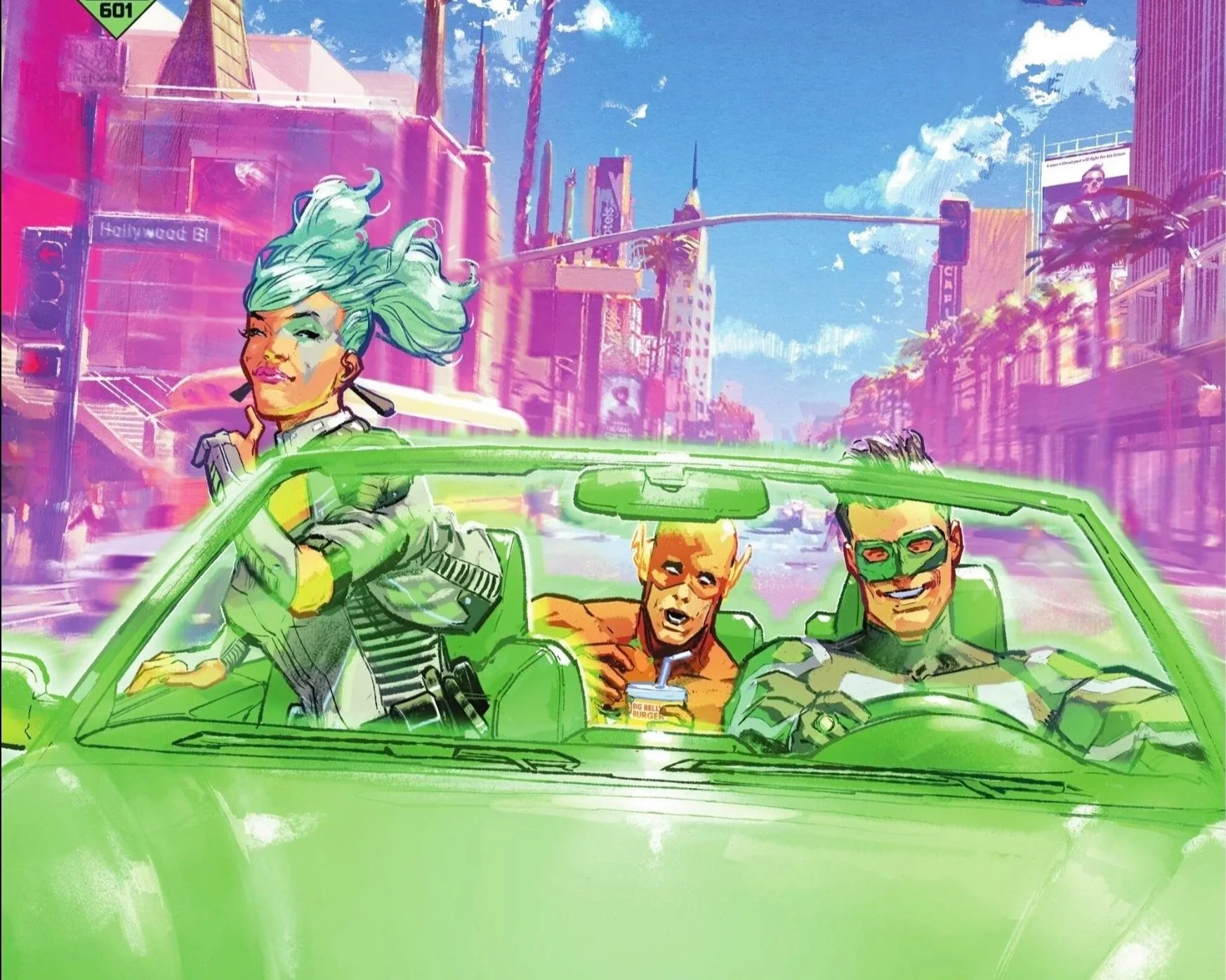 We’ll start with the writing. As I said, Jeremy Adams has been writing this book for about 3 years now, and he’s definitely made the GL corner of the DC Universe his own. The book has come a long way since the initial ‘Hal’s back on Earth and ringless’ storyline of the 2023 relaunch, to where we are now. Adams has a good grasp of both his leads and what makes them tick, although he does have a tendency to make them both a little too jokey at times. The other thing is that splitting the page count amongst the two leads makes the pacing a little rough at points. Hal’s tale is clearly building to something, while over on the Kyle side it’s too soon to tell where his story is headed. He’s already caught 2 of the escaped prisoners he was sent to earth to find, so what happens once he’s collected them all as if they were evil alien Pokémon? Does he get to stay on Earth after that, or is it back to space and neglecting his “normal” life?