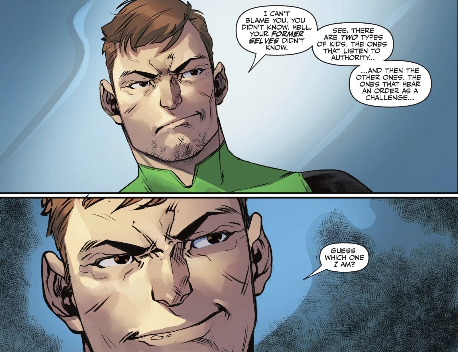 By having two leads - Hal Jordan and Kyle Rayner - each with their own story, we get to have both types of major Lantern story in one. How does it work? Read on to find out…