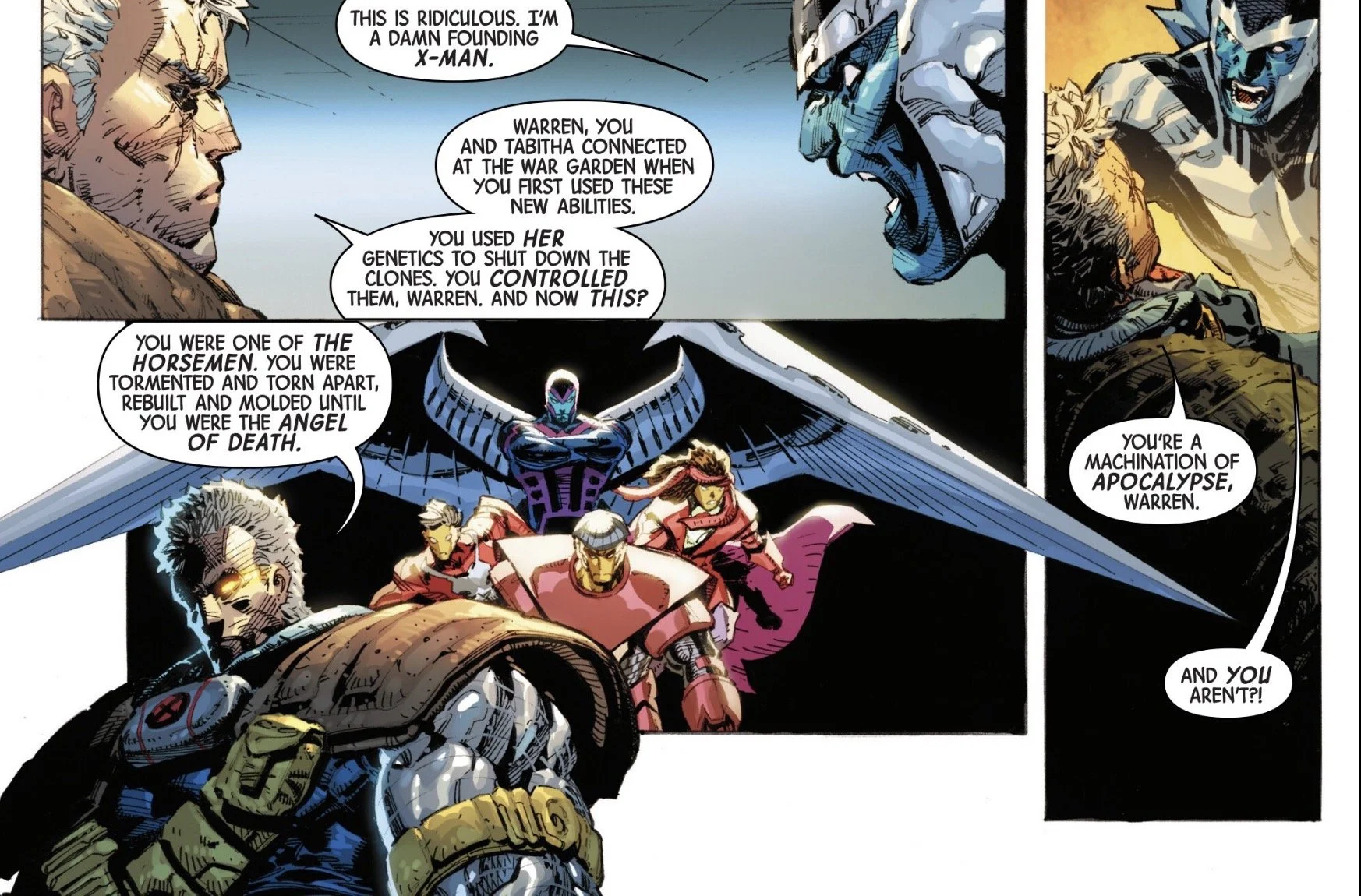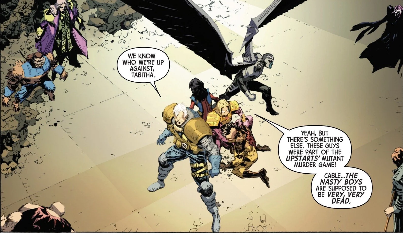 Cable makes it abundantly clear that he doesn’t trust Warren and this strange new form of his, even more so than when he’s Death. Akhiro says that the energies that kept Tabitha’s soul in her body are still distinct, and he can track them. Wolverines, man, they’re always sniffing things.