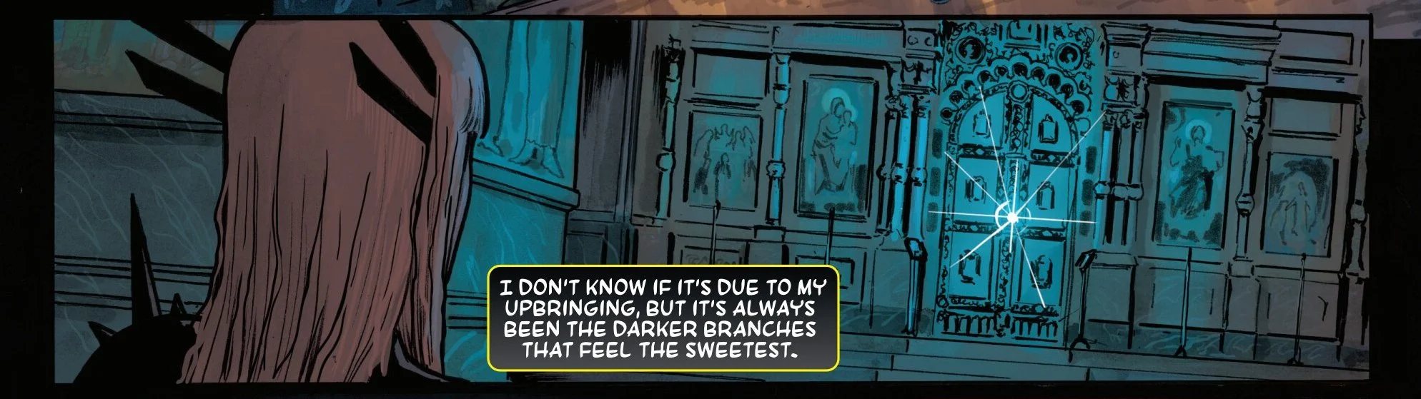 Upon entering this church is where everything begins to go wrong. This was just a set up by The Immortal. He traps Magik in a spell, chaining her to the ground leading Colossus to try and chase after them in a short period of time. But its all just too late as Magik is gone once again, his biggest fear from the last issue has happened once again as tear falls from his metallic face.
