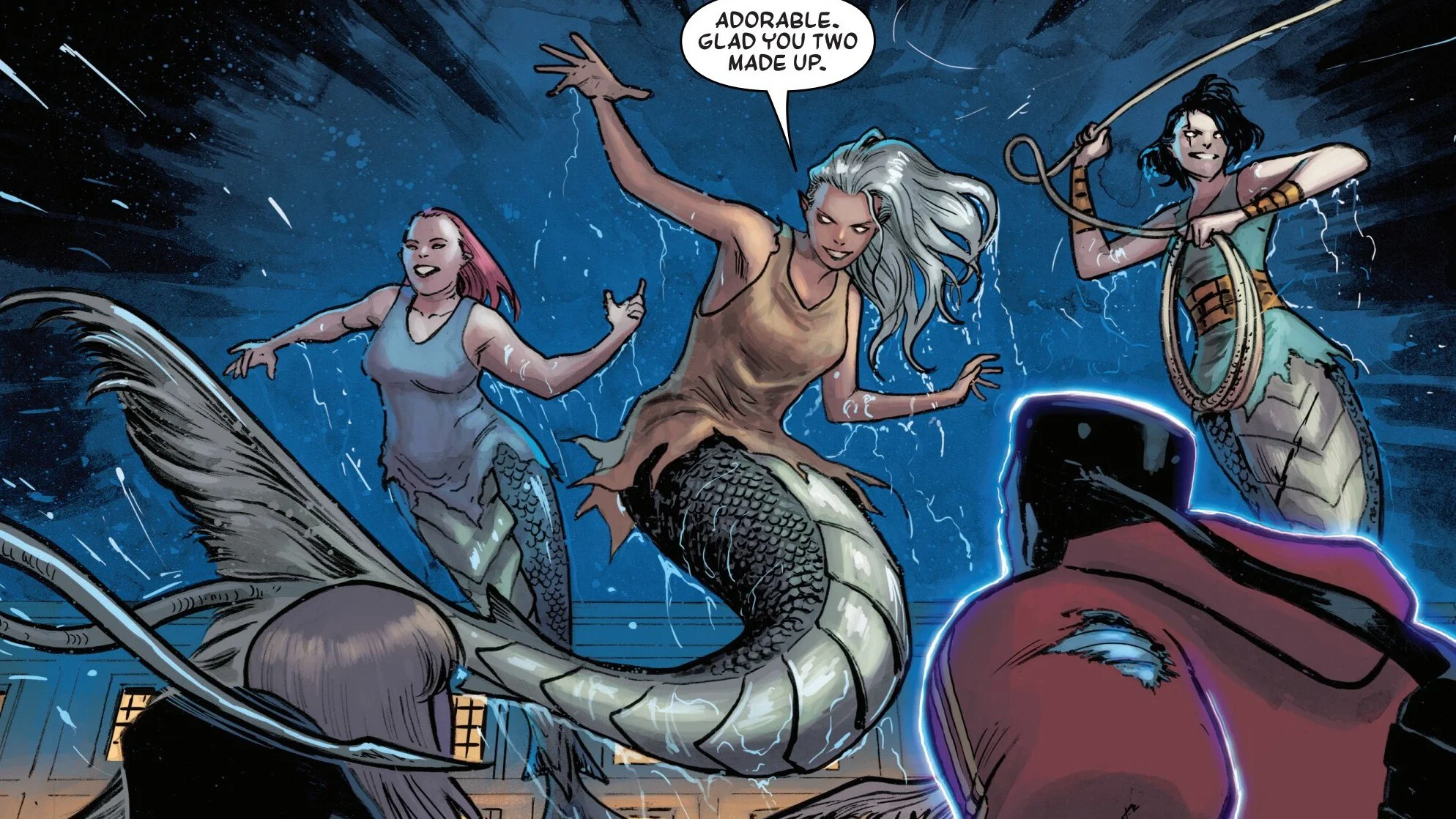 Now in St. Petersburg, they are starting the lose the connection. Halfway through their argument, they are attacked by Rusalkas. Russian Siren's from folklore. And they begin to put a beating on Magik underwater, slicing her arm and stomach open with deep slashes.