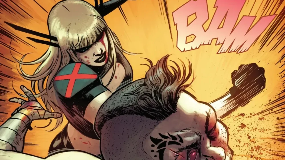 Illyana lands a big punch on Kaos. Kaos, as described by Illyana, is a Russian mage she’s worked with in the past, but for some reason he seems not like himself. This is when it’s revealed that her kidnapper is actually controlling him.
