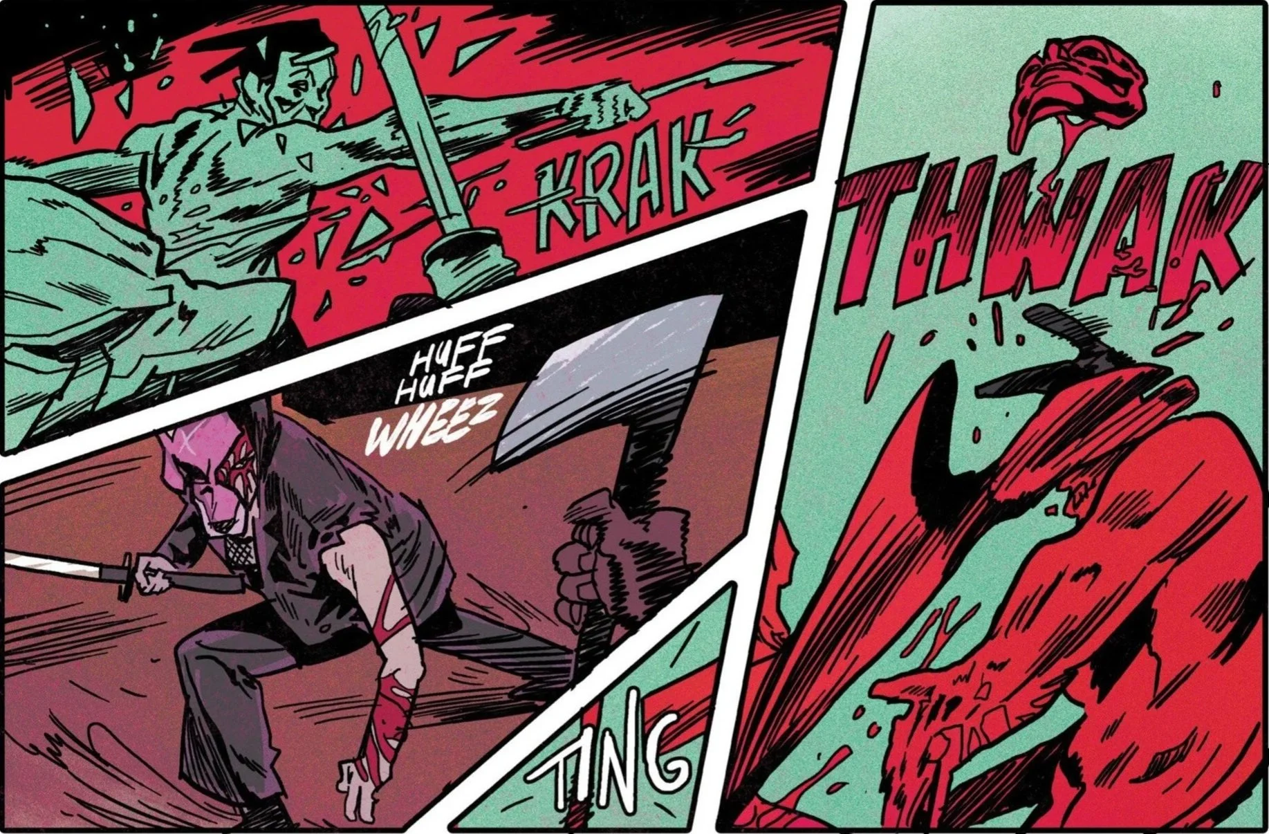 The violence is also handled with precision. It’s graphic, but it never feels excessive or distracting. The gore reinforces the stakes rather than overwhelming them, making each hit feel consequential. Small visual choices, like obscuring exactly who is being injured in certain moments, add another layer of tension by forcing the reader to stay engaged and interpret what’s happening in real time.