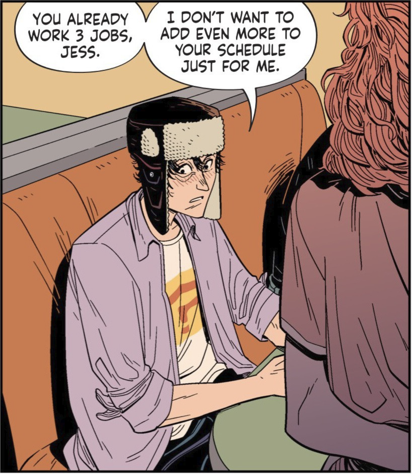 Wagner went against the usual lengthy romantic trope where the guy chases the girl for issues on end. In 2026, Jess cuts to the chase and asks Marcus to dinner. This also helped flesh out the character traits of Marcus in the pages that followed. He is overthinking it when the girl he is in love with already clearly likes him. He is doing the usual talking into the mirror and psyching himself up. All of these elements show he does not believe in himself.