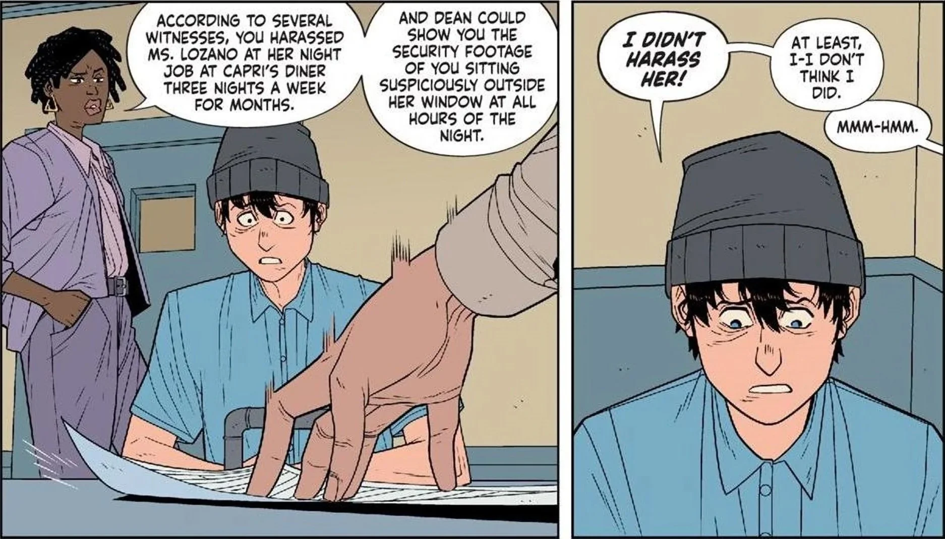 At the same time, there are subtle hints that things may not be as straightforward as they seem. The way the interrogation plays out, combined with certain choices Marcus makes later in the issue, suggests that there may be more to his character than what has been presented so far. These moments are not emphasized heavily, but they are present enough to create a sense of unease that adds depth to the story.