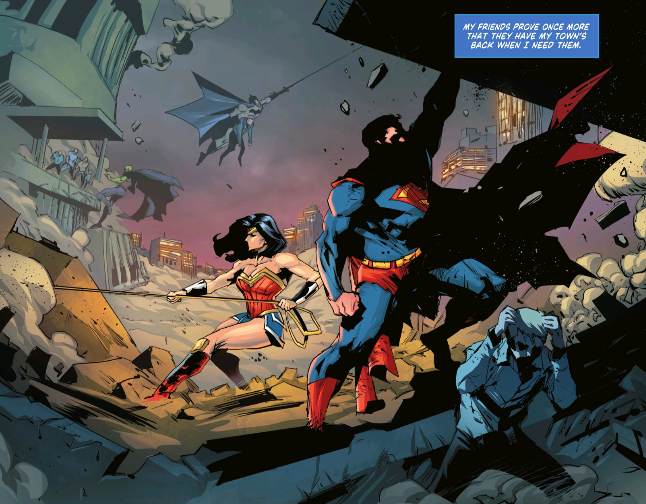 The kids see the newly destroyed Blüdhaven and that's when Nightwing sees that more important matters are at hand now that Zanni had seemingly been handled. After returning the kids home, Blüdhaven comes together to help rebuild with the assistance of the Justice League as well.