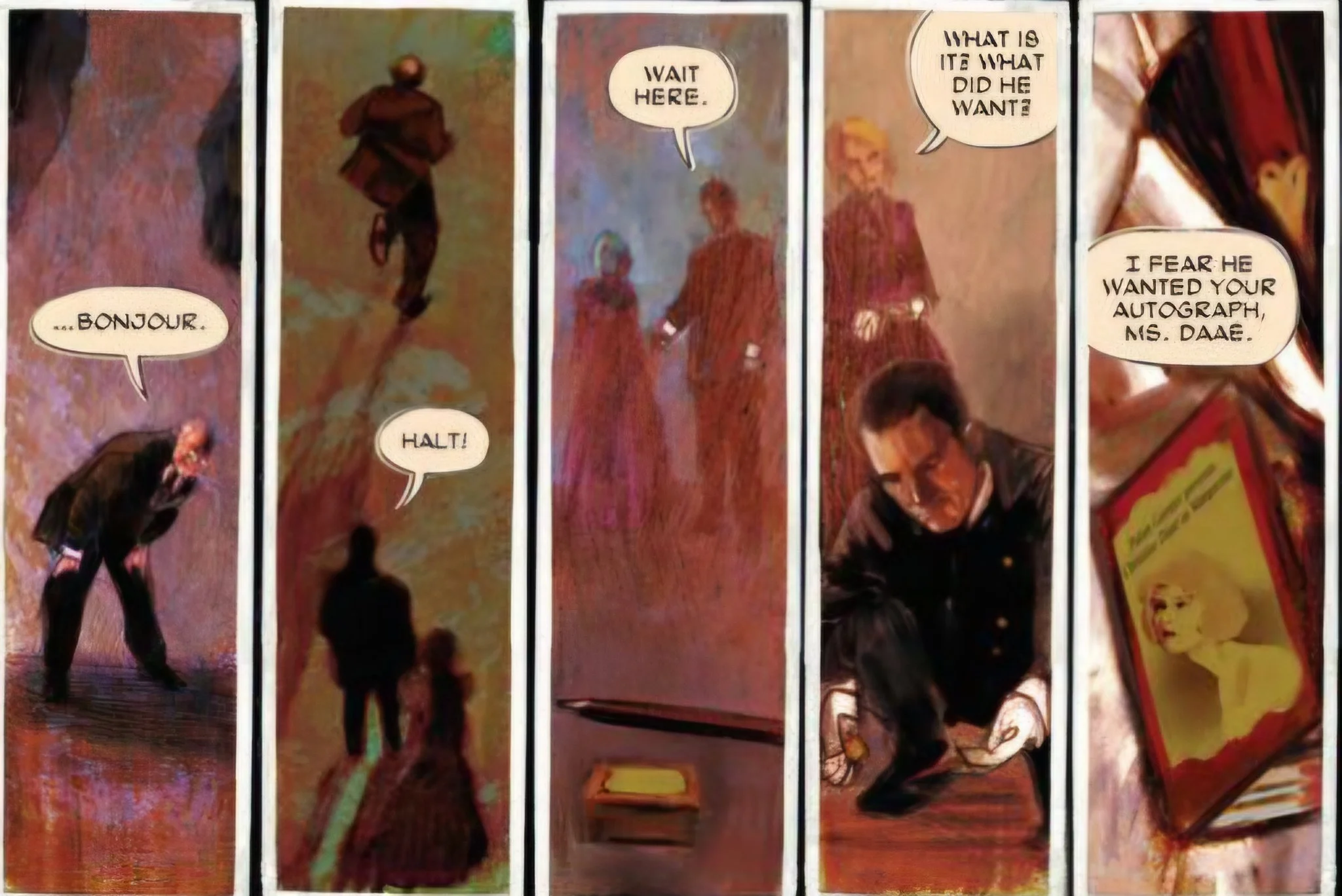 Simmonds’ style in Phantom #2 evokes the Belle Époque fever dream of Henri Toulouse-Lautrec. There’s a specific use of "bloody reds" and "lead whites" that makes every page feel like a haunted oil painting. The way he draws the Phantom is particularly genius—he’s often just a silhouette with a stark white mask, blending into the shadows of the opera house so effectively that you find yourself scanning the backgrounds of every panel just to make sure he’s not lurking there.