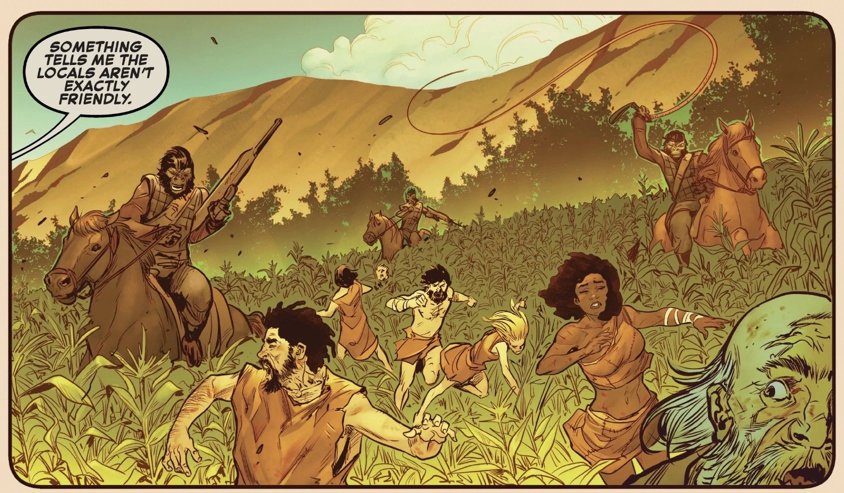 While it’s been a while since I’ve seen Planet of the Apes and the specific names don't all ring a bell, it doesn't hinder the story since they serve as the primary antagonists. Given the massive status quo shift they underwent at the end of the issue, I imagine they’ll become even more central to the plot moving forward.