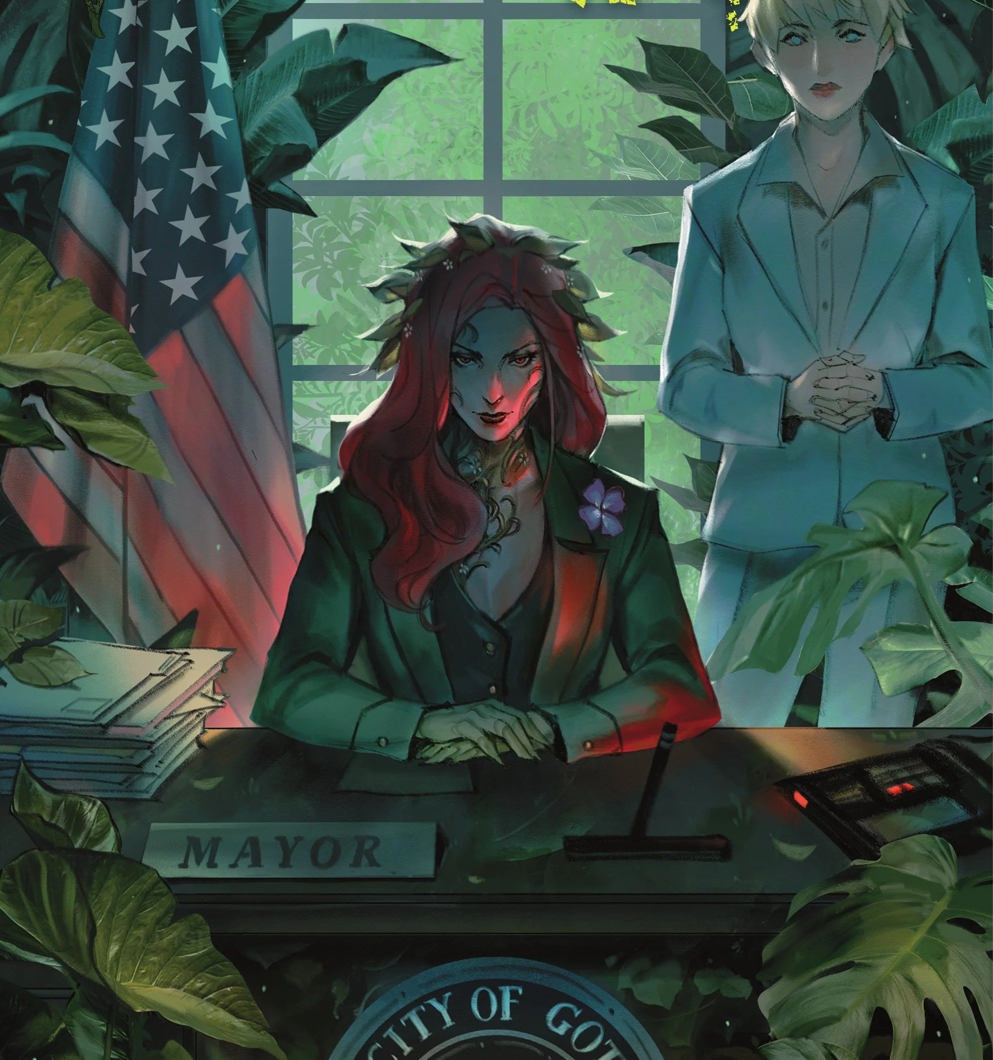 Poison Ivy #42 launches the next phase of the series with a premise that immediately raises eyebrows: Pamela Isley is now the mayor of Gotham City. The issue doesn’t spend any time explaining how this came to be. Instead, it drops readers directly into Ivy’s new political reality and lets the mystery unfold from there.
