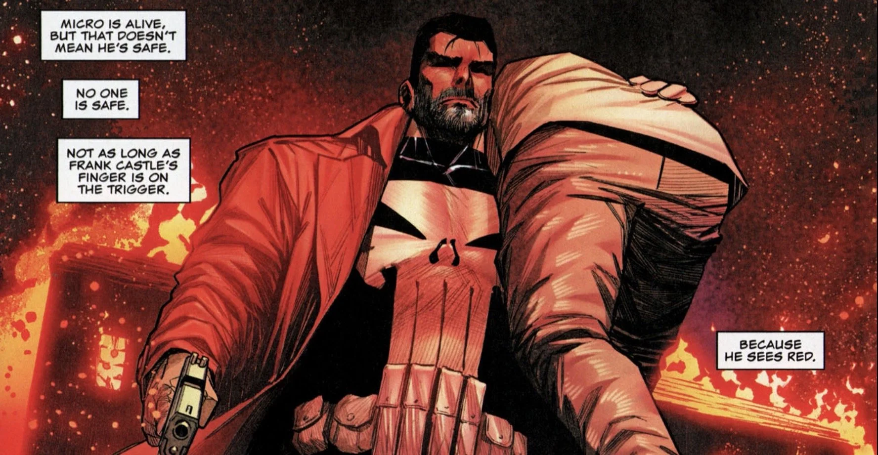 I know the Thomas Jane movie version of the Punisher has its detractors, but that was always one of my favorite things about it: Frank was a thinker and a planner, not just a mindless force of nature. Kudos to the creative team for bringing that version of the character back to the forefront.