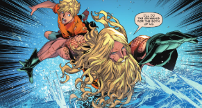 Somewhere in the middle of the Blue, a child Arthur Curry runs into a grizzled, bearded older version of himself. They dive deep into the Blue to try and get back home. Meanwhile, Mera and her mother, Lolanna, are finally confronting each other as they fight for the return of Arthur. The innocence and wisdom agree, running into the love that lives inside Arthur. That version’s heart is no longer in it, as he still believes Mera to be dead.