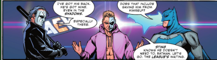 Of all the interactions in the book, the best was the Darby Allin and Batman partnership. Their banter evoked a cop movie dynamic, with the grizzled veteran and hot-headed rookie. It was so much fun. I would read a 12-issue mini-series about Batman and Allin solving crimes and winning tag belts.