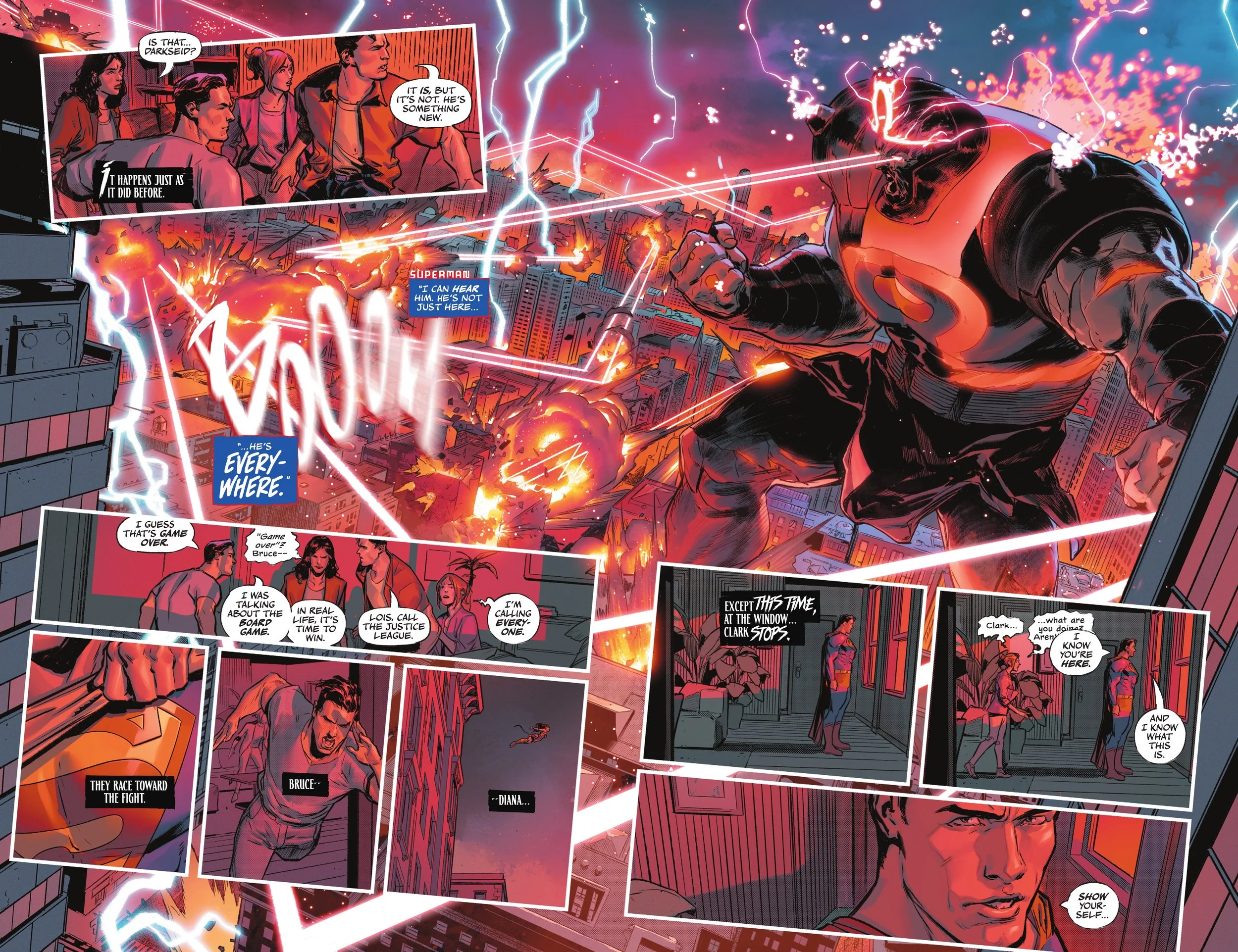 Honestly, by now this isn’t really a bug - it’s more of a feature. The story’s been hinting all along that the King Omega concept was going to be something supremely familiar at the start, but then turn to something utterly convoluted by the end. Of course things, would get out of hand, with crumbling alliances, randomly wild power levels spiral, and the idea of actually “winning” is about as relevant as a floppy disk. Especially when the shallow sleight of hand of maybe having Lex Luthor actually being in the driver seat to take things home in a different way would’ve been infinitely better than say Superman being the most predictable heroic final boss who wins in the most predictably Superman way of all time. It would be almost charming if it wasn’t so eye-gougingly frustrating (by that I mean I want to gouge my own eyes out, not Snyder’s because I still like his non-event work and still want him to do his best on Absolute Batman). But even if the chaos makes sense, it leaves the story stumbling along without its trusty GPS. The momentum is all wild energy, but keeping track of what’s happening? Good luck - bring breadcrumbs and then find even those missing by the time you reach the end of the book.