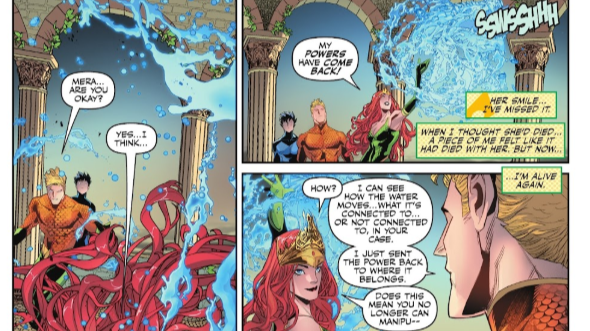 Also, Aquaman can now make and manipulate ice. That’s cool. That surprise power increase continues his evolution into a much more powerful being in the DC Universe.