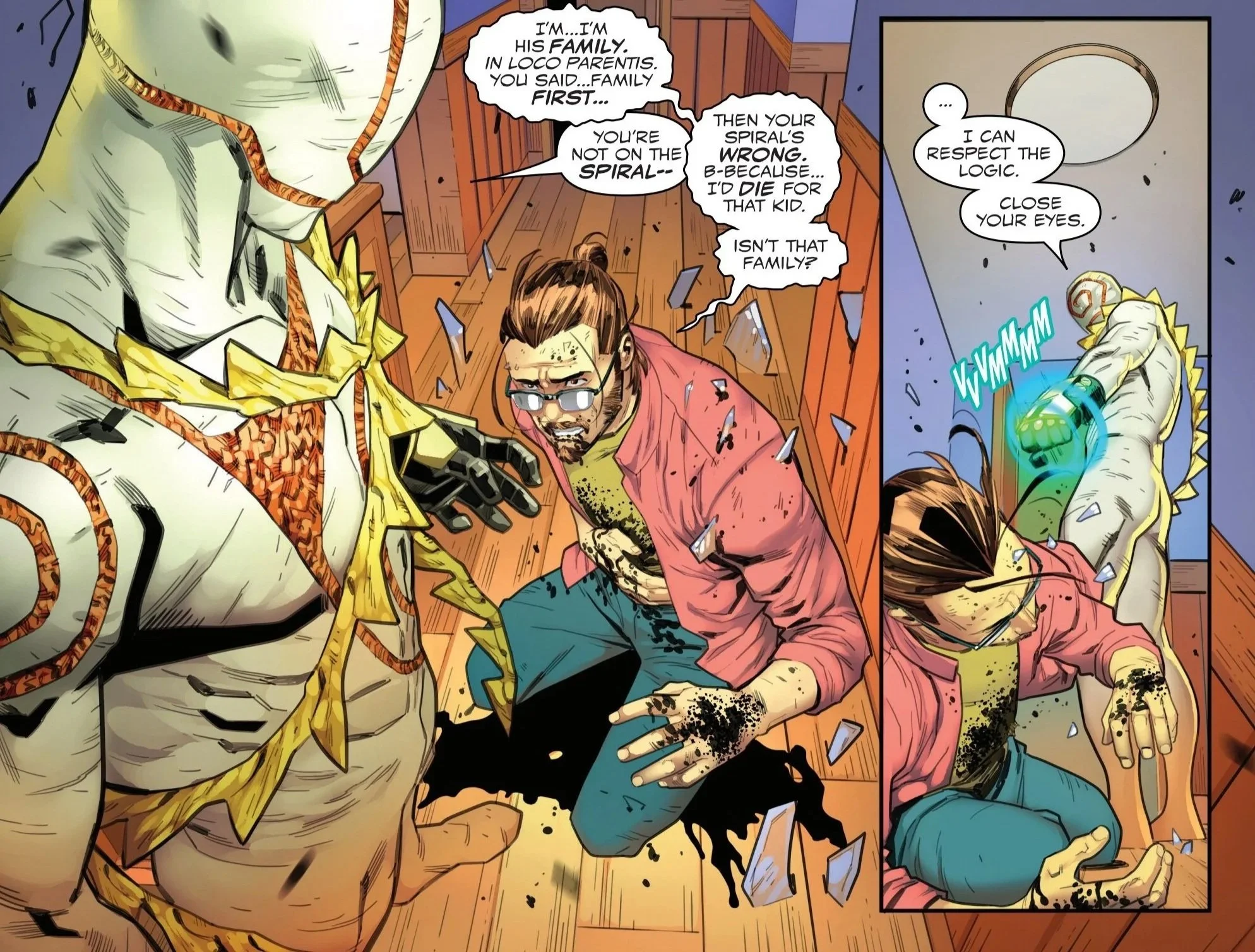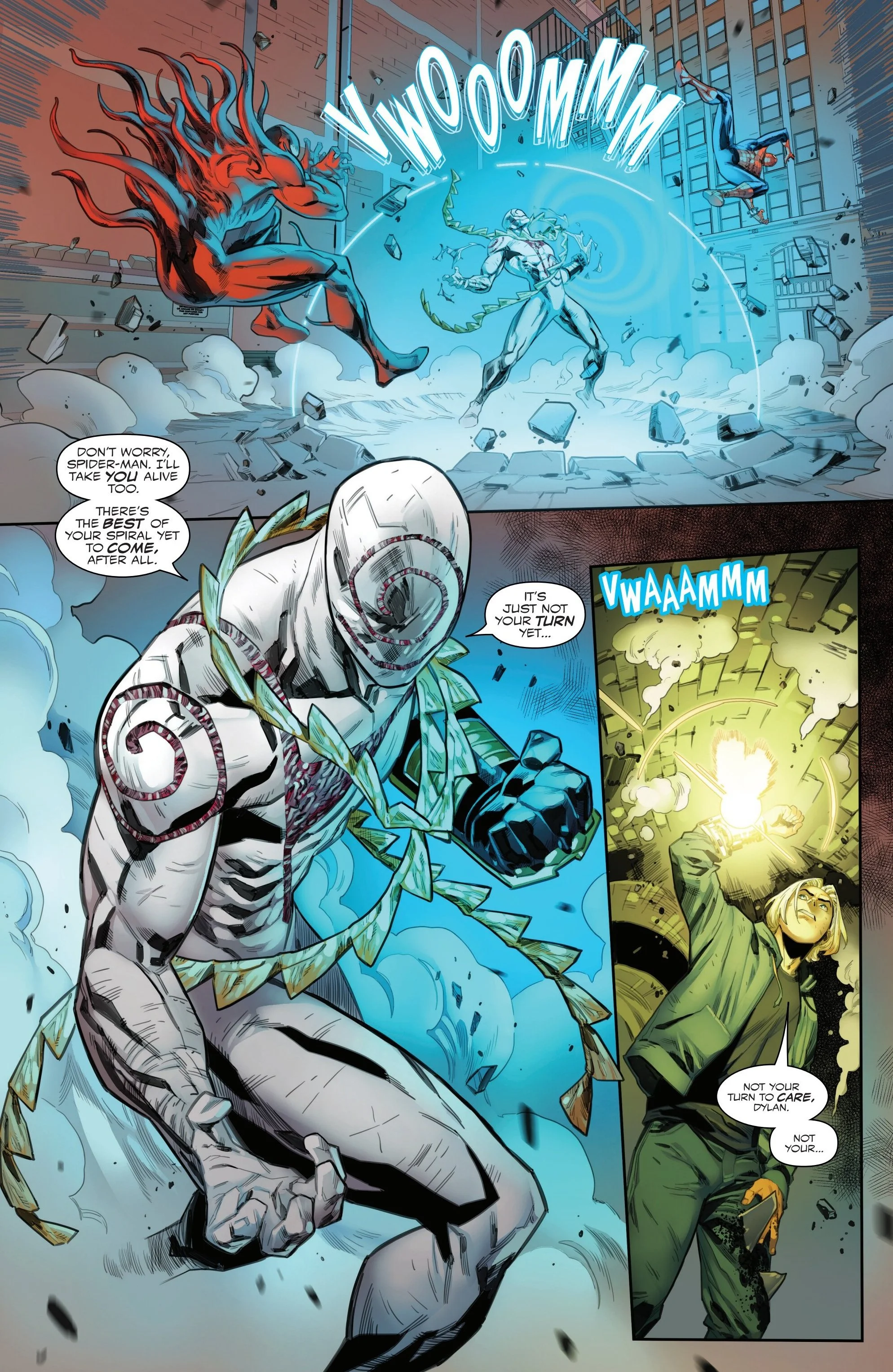 First of all, Paul’s death is probably one of the most heroic things imaginable. For all his faults—both real and imagined—Paul has always stuck his neck out for people to a fault. It’s an infuriating trait when contextualized against, say, Peter Parker, in the way it was that truly created the original fan ire in the first place. But here? Where he puts himself in the line of fire against a super-powered serial killer to save Dylan Brock—a kid who’s been hating on him since day one—is almost… poetic? Dylan himself can’t seem to believe it either, and I think this entire part gets overshadowed a lot whenever this book is discussed, because everyone only talks about Paul dying. In either case, there’s a lot happening here that I think holds real emotional weight: Torment mocking Paul for not really having “any connections to anyone,” hence no “spiral” to exploit, which feels like another meta-jab at the character. But then you have Paul turn that around to buy Dylan time to escape, arguing that he’s Dylan’s family too and that he’d die for him, thus making him “eligible” for Torment’s spiral. It’s some great storytelling that does more to humanize Paul in 2–3 pages than he’s ever been in the last few years since his introduction, and it holds tragic weight because in the end… Paul did die for Dylan. And he died well and truly heroically, regardless of how the fanbase feels about him. I think that in itself is an achievement.