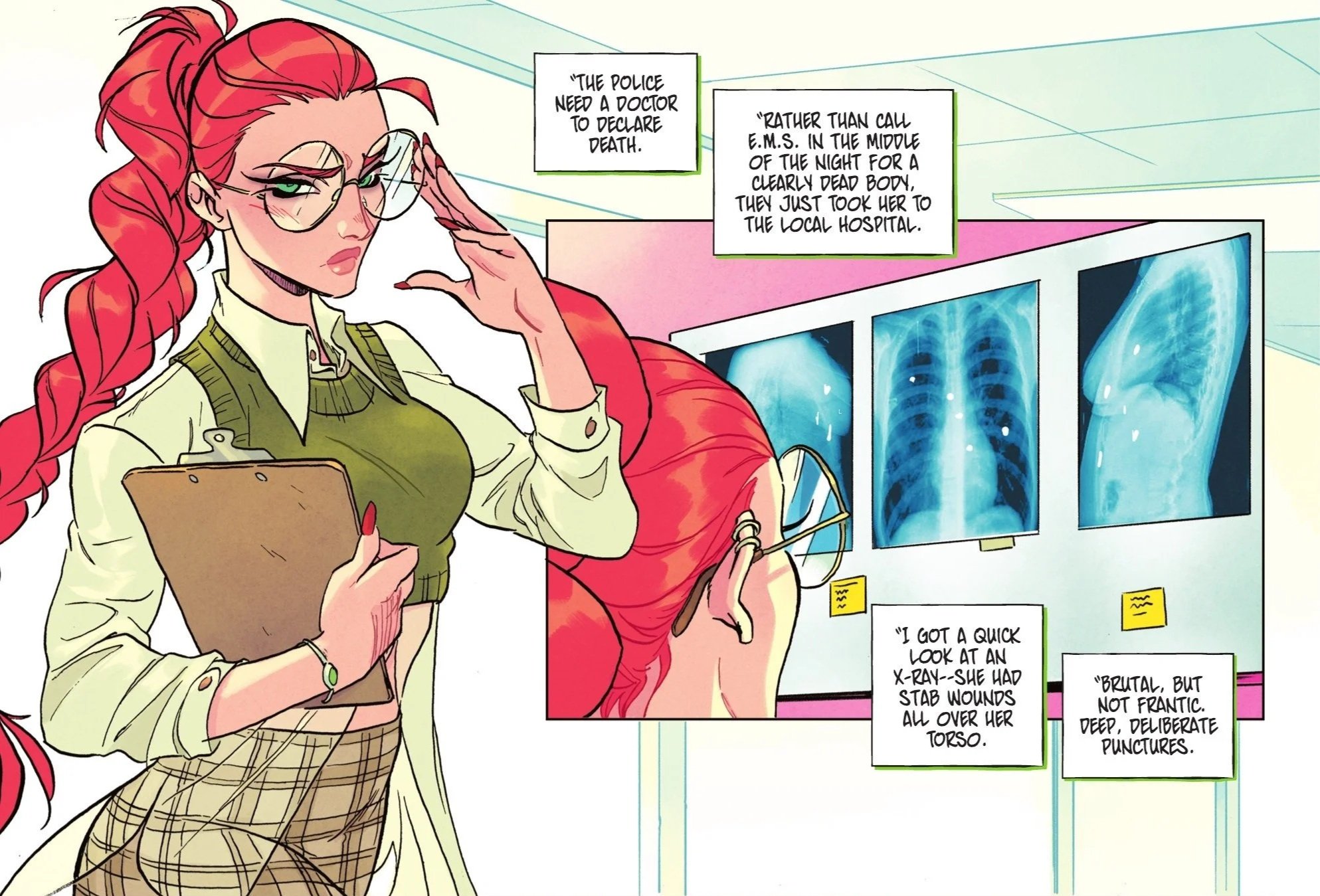 The thematic elements are woven naturally into the narrative. The anger over the victim being dismissed as a suicide feels grounded in character rather than inserted as a lecture. The story doesn’t pause to explain its perspective; it simply presents women who are competent, capable, angry, compassionate, and unwilling to be ignored. That restraint is what makes it effective.