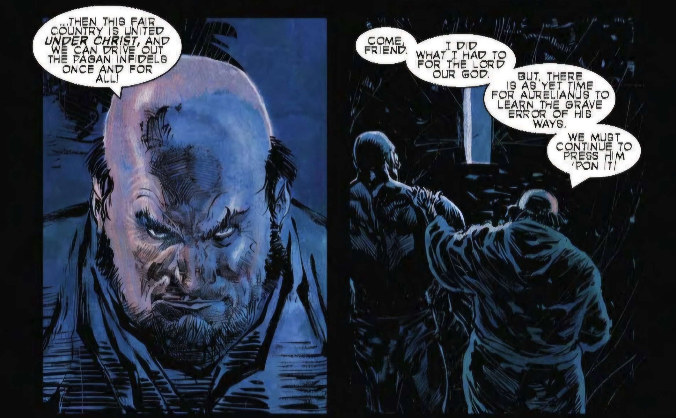 Issue #4 picks up in the aftermath of the treachery we saw in issue #3. Aurelianus is losing his grip, his villages are infested with plague, and the "Devil Spawn" finally makes a move that isn't just lurking in the shadows. He’s becoming a political reality, and the collision between "Divine Right" and "Hellish Might" is finally here.