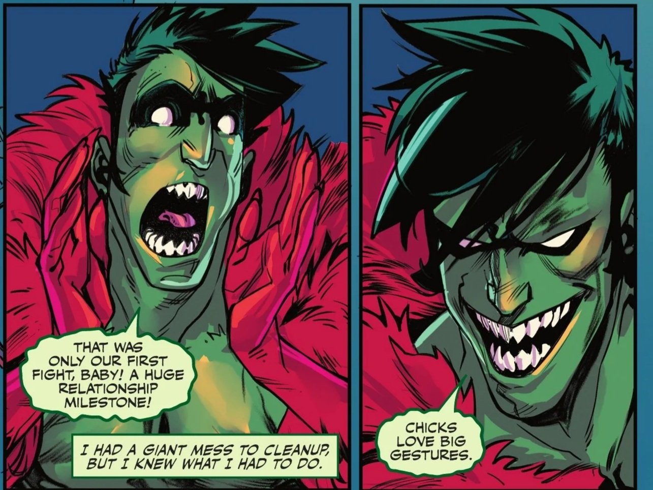 Their chemistry is infectious, weird, and yet… oddly wholesome. They feel like a non-toxic version of Joker and Harley—two people who clearly have issues and aren't exactly "nice," yet share legitimate affection and love. Despite the crude and suggestive jokes from Creeper and Ryder alike, it becomes clear that they care deeply for one another. It reminds me of the relationship between Silver Banshee and Jimmy Olsen; like those two, I sincerely hope this pairing sticks around for a long time.