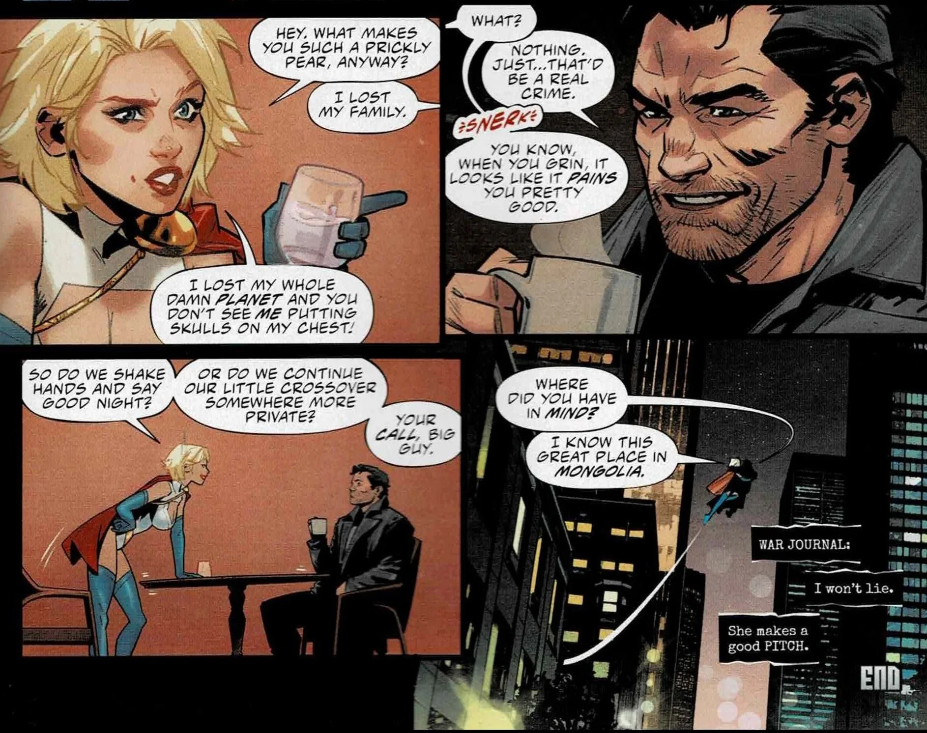 Closing the issue with Gail Simone’s story is a smart move. Pairing Power Girl with the Punisher sounds strange on paper, but the execution makes it work.