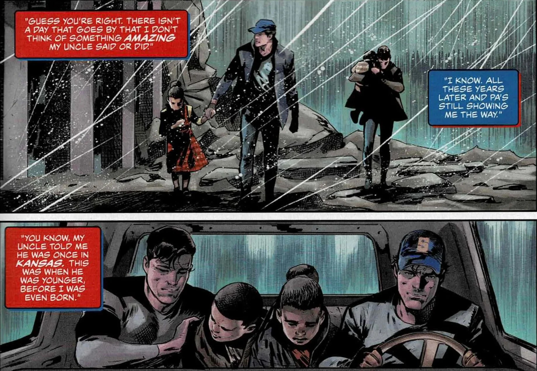 Jeff Lemire’s story slows things down considerably, focusing on Pa Kent and Uncle Ben. It is a quieter, more reflective piece that serves as a reminder of where both Superman and Spider-Man get their sense of purpose.