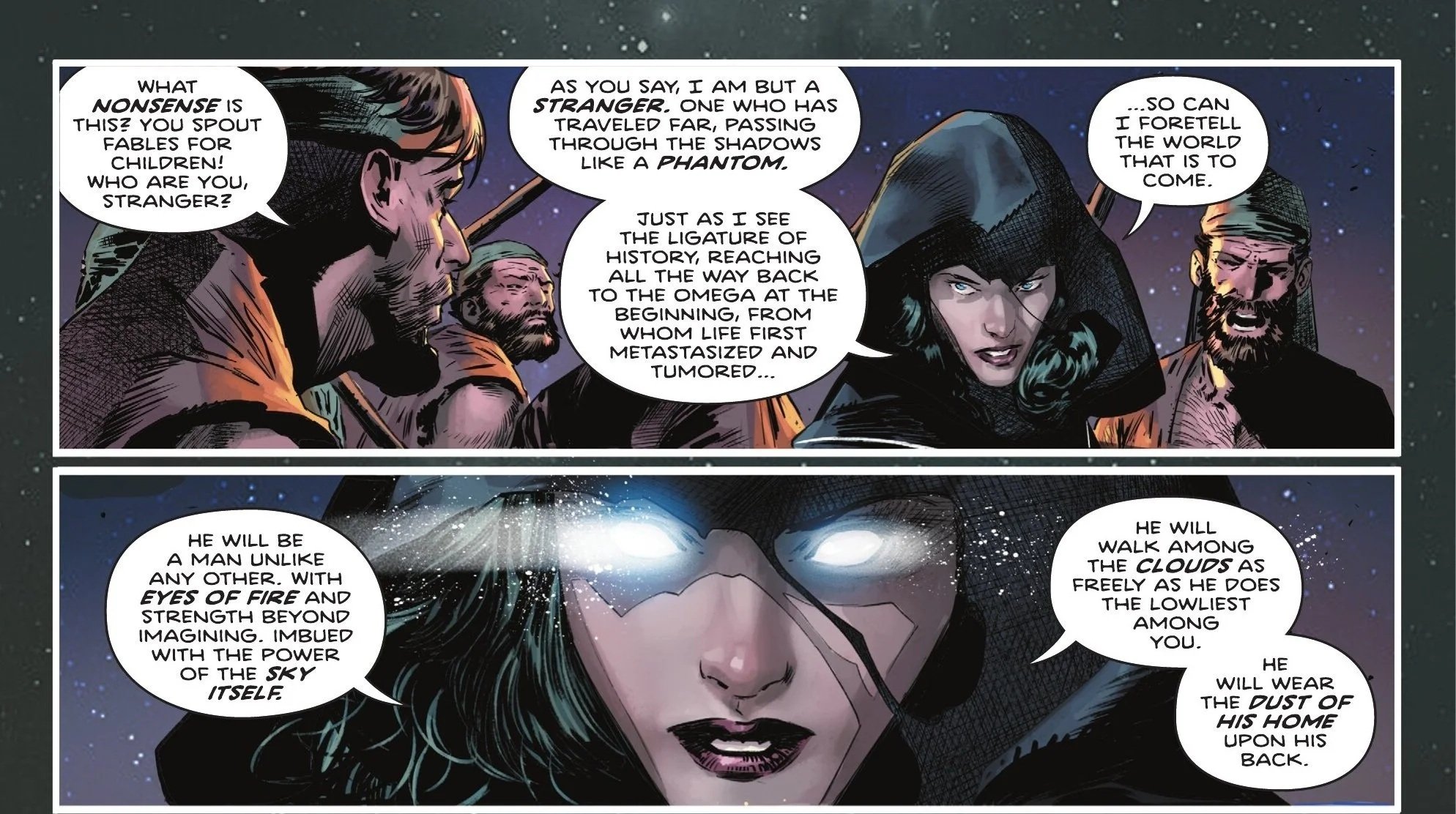 I enjoyed how her prophecy clearly seems to be describing Superman, but events will likely take place where Teth-Adam attempts to fulfill that prophecy himself. I think it was a rather cool reveal, and I hope we see this Stranger appear again. Also interesting to note is that this woman seemingly bears a striking resemblance to Raven, given the shape of her hooded cloak. Given the Absolute Universe’s penchant for radically reimagining characters, I wouldn’t be mad over it.