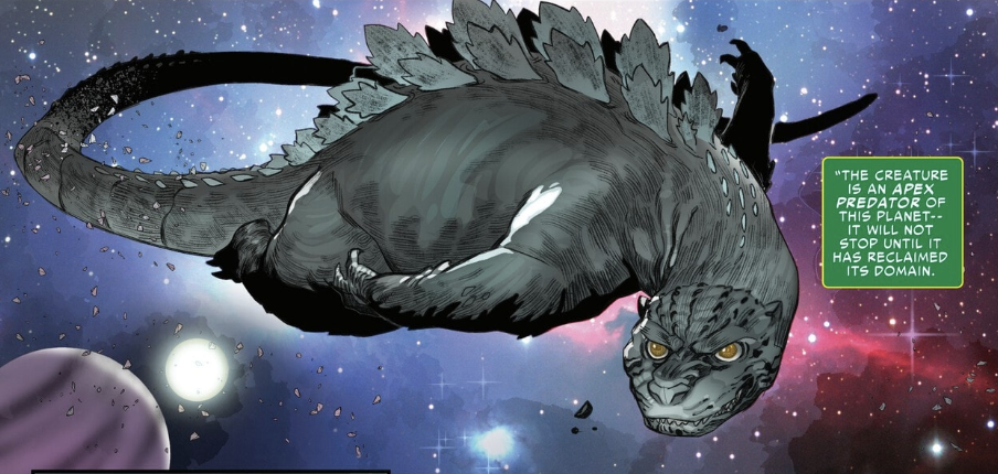 Godzilla makes his way Across the Cosmos