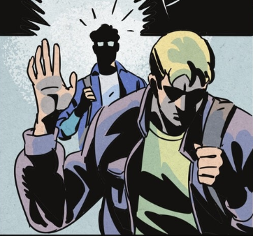 One of the other panels I want to point out is when Pete essentially blows Clark off in the school hallway. We see shadows cover his entire face as he turns away from Clark because, at that moment, he feels devoid of emotion. He feels hurt. He doesn’t feel like himself, and with Clark’s face shrouded in shadow as well, it’s as if he doesn’t know his friend either. This is just another example of how great art can make a good story, great.