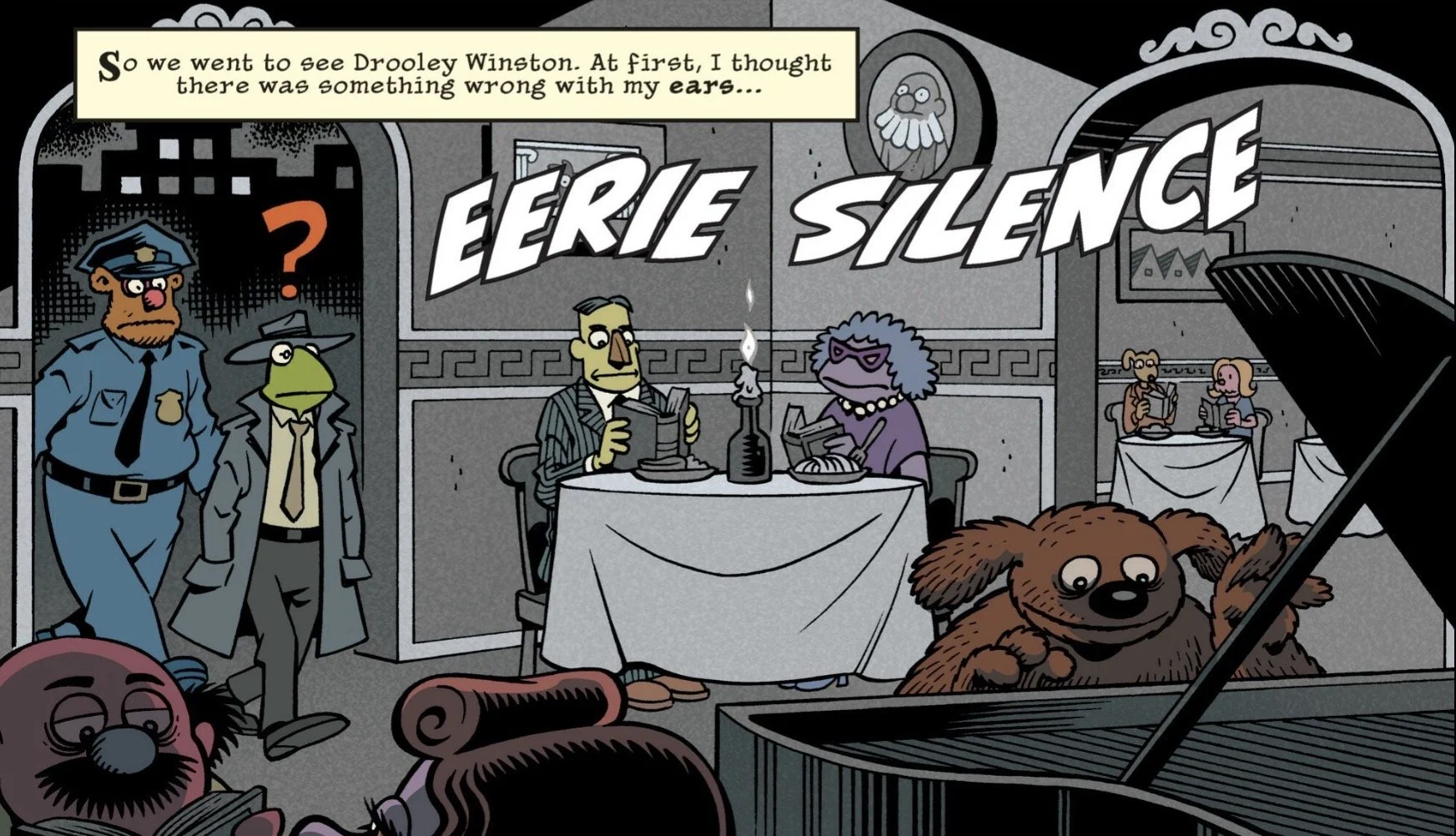 Run, don’t walk, to the nearest comic shop and ask for a copy of Muppets Noir #1. Tell them I sent you. They’ll reply, “Who?” and then charge you regular price, but at least you’ll walk out with a copy of the book. And it will be worth it.
