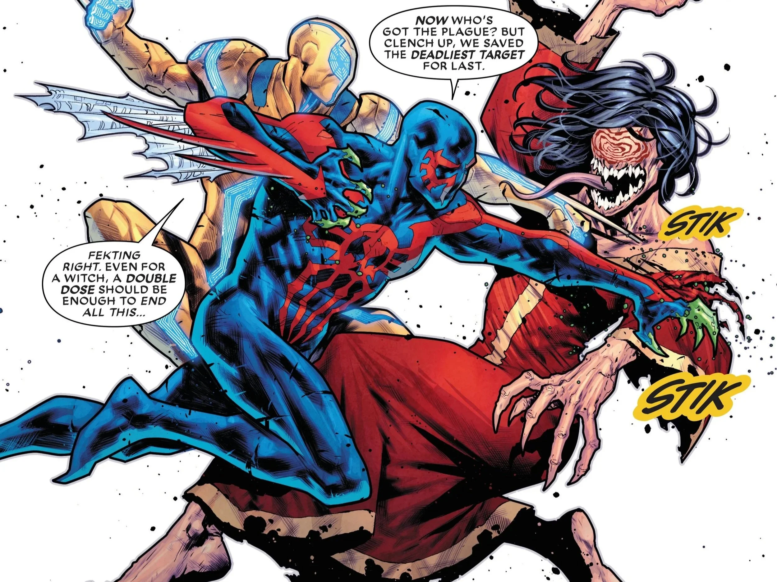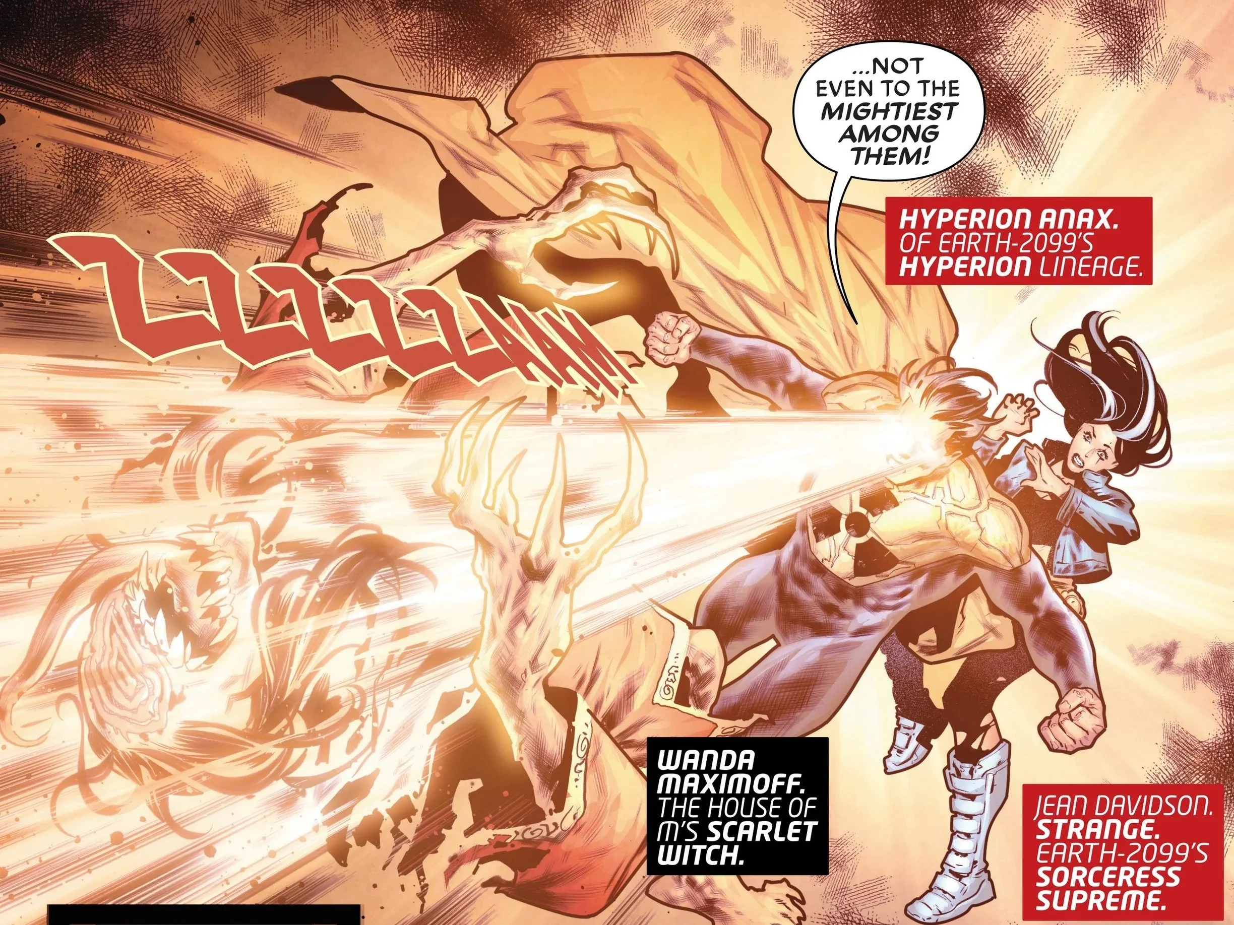 Two of the most powerful heroes in the 2099 reality take on Abyssus’ strongest warrior, the infamous House of M Scarlet Witch.