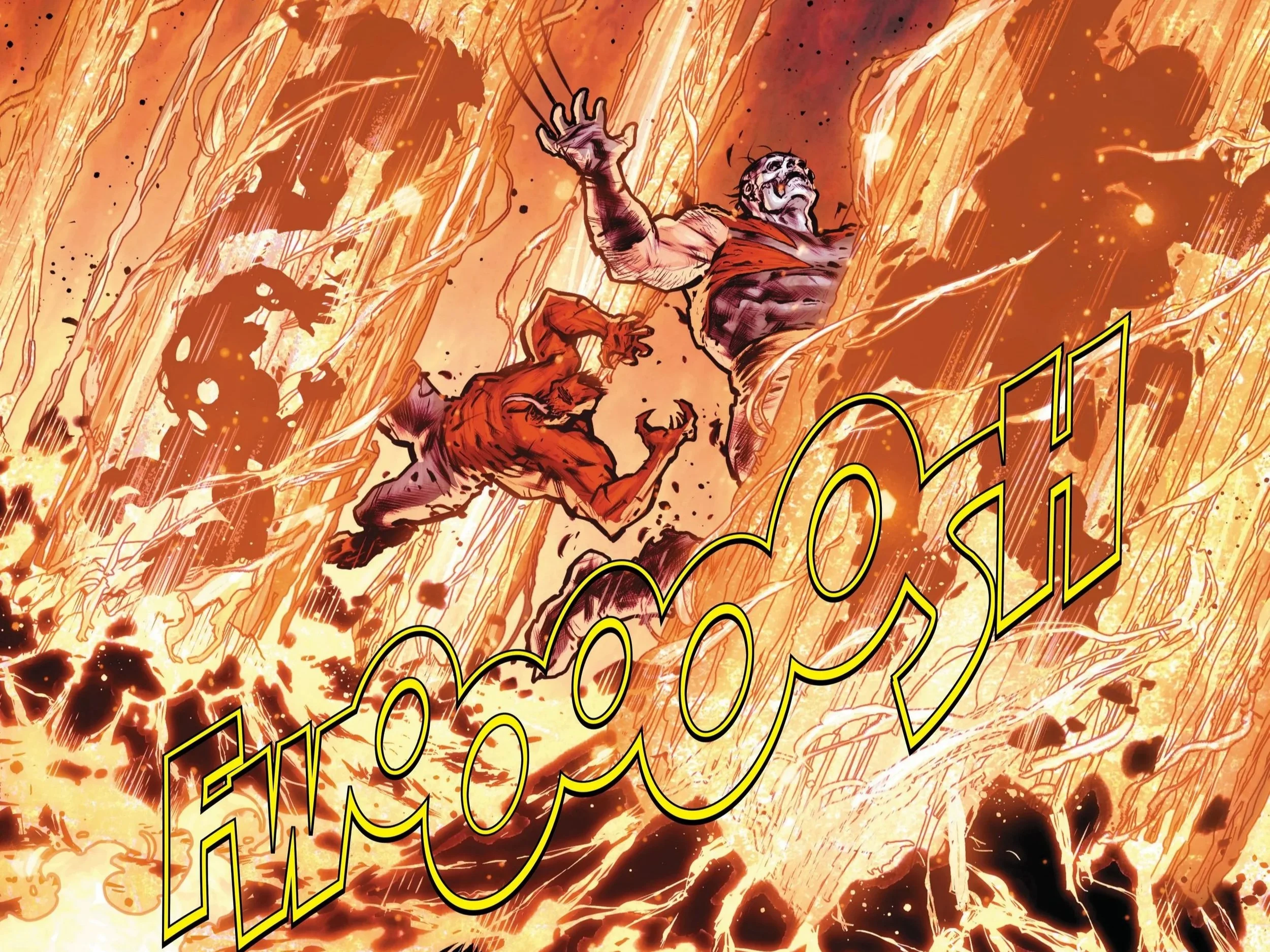 Both Hulk and Red Hulk 2099 try to restrain the Knullified Red Hulk of Earth 616, but the sudden and convenient geysers of lava that spew from the planet’s volatile core give Ross some much-needed breathing room as AoA Logan is already healing from having his face completely melted off. Miguel and Spider-Man 3099 are rapidly swinging through the battlefield as the synthesized venom they’ve concocted is finally completed. Spidey 3099 pops his talons and shares the immunocyte suspension with Miguel, who has his claws drenched with the goop before they charge the battlefield. In a dazzling display of speed and agility—and no shortage of quips—both Spider-Men quickly rush through the enemy roster, injecting the symbiote-killing poison into the systems of almost countless foes before coming to the biggest gun the Abyssal Warriors have in the form of House of M Wanda, giving her a double dose just to be safe.